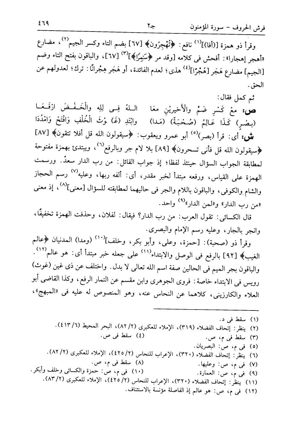 (¬2) ينظر: إتحاف الفضلاء (319)، الإملاء للعكبرى (2/ 82)، البحر المحيط (6/ 413).