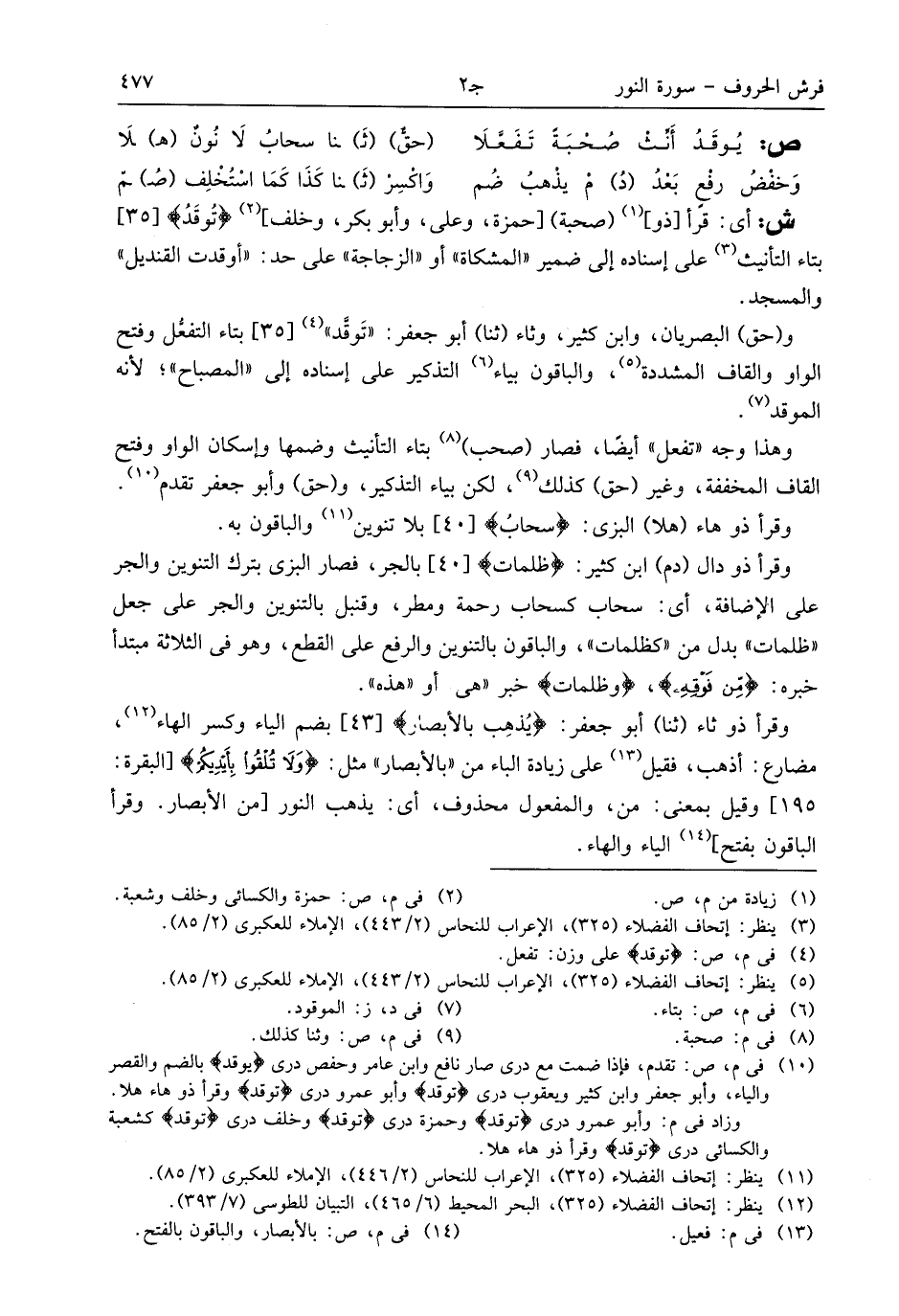 (¬12) ينظر: إتحاف الفضلاء (325)، البحر المحيط (6/ 465)، التبيان للطوسى (7/ 393).