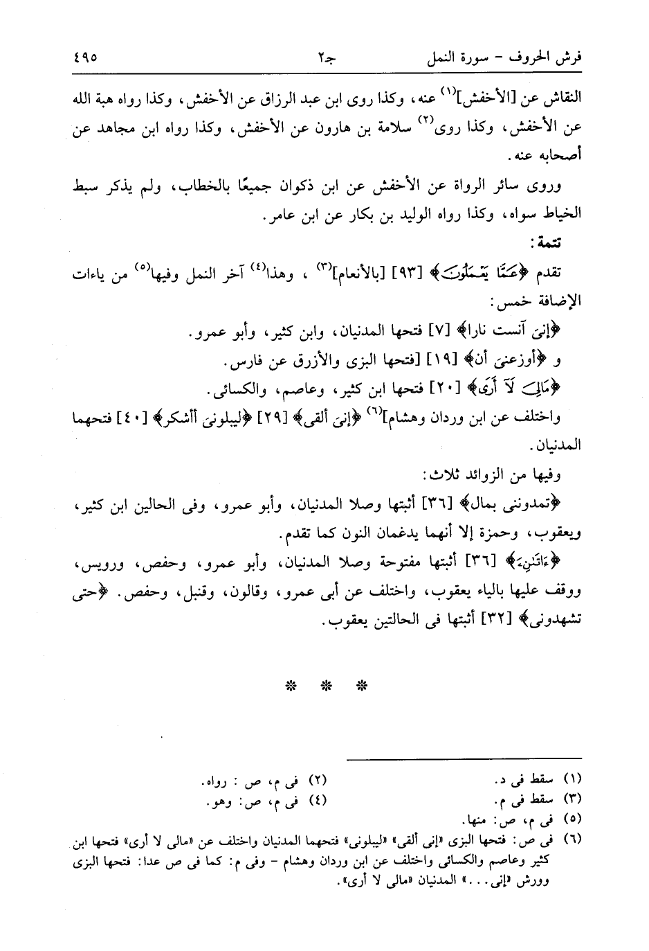 (¬6) فى ص: فتحها البزى «إنى ألقى» «ليبلونى» فتحهما المدنيان واختلف عن «مالى لا أرى» فتحها ابن كثير وعاصم والكسائى واختلف عن ابن وردان وهشام- وفى م: كما فى ص عدا: فتحها البزى وورش «إنى ... » المدنيان «مالى لا أرى».