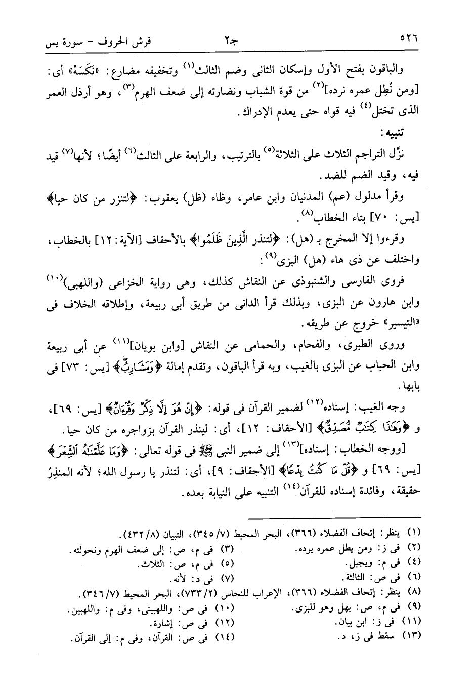 (¬8) ينظر: إتحاف الفضلاء (366)، الإعراب للنحاس (2/ 733)، البحر المحيط (7/ 346).