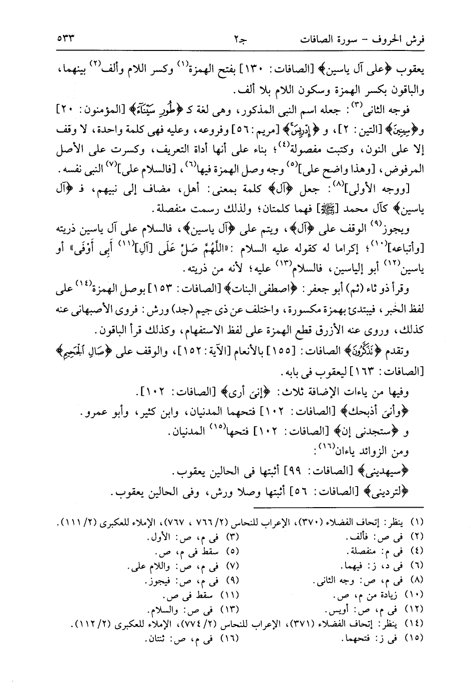 (¬1) ينظر: إتحاف الفضلاء (370)، الإعراب للنحاس (2/ 766، 767)، الإملاء للعكبرى (2/ 111).