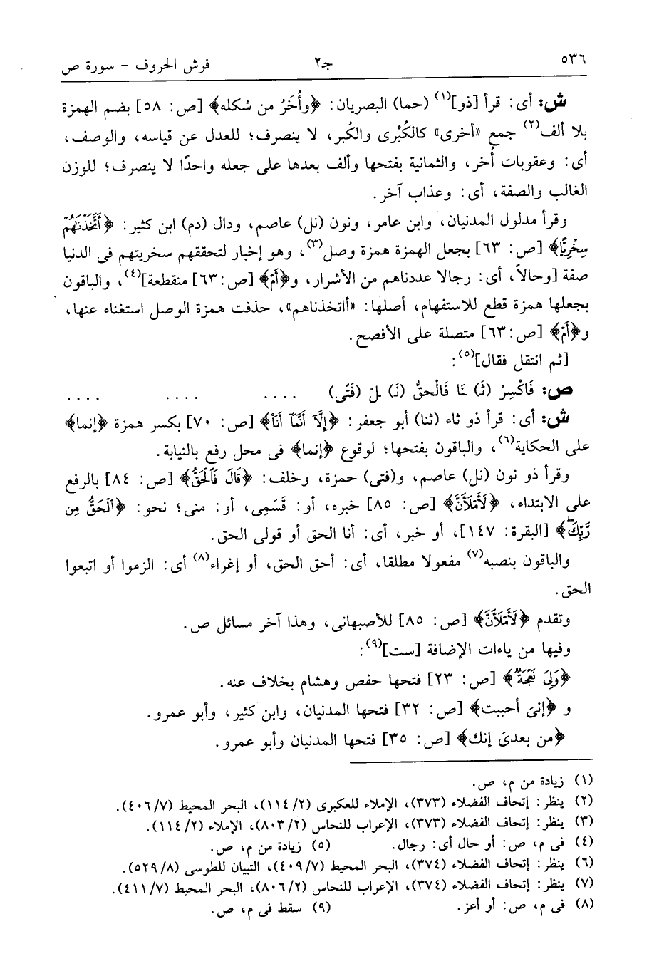 (¬6) ينظر: إتحاف الفضلاء (374)، البحر المحيط (7/ 409)، التبيان للطوسى (8/ 529).