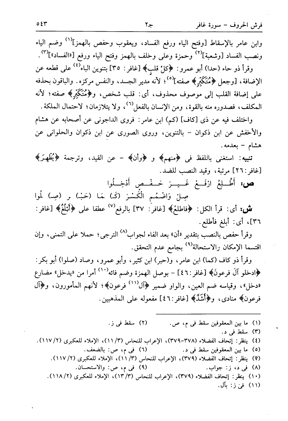 (¬10) ينظر: إتحاف الفضلاء (379)، الإعراب للنحاس (3/ 13)، الإملاء للعكبرى (2/ 118).