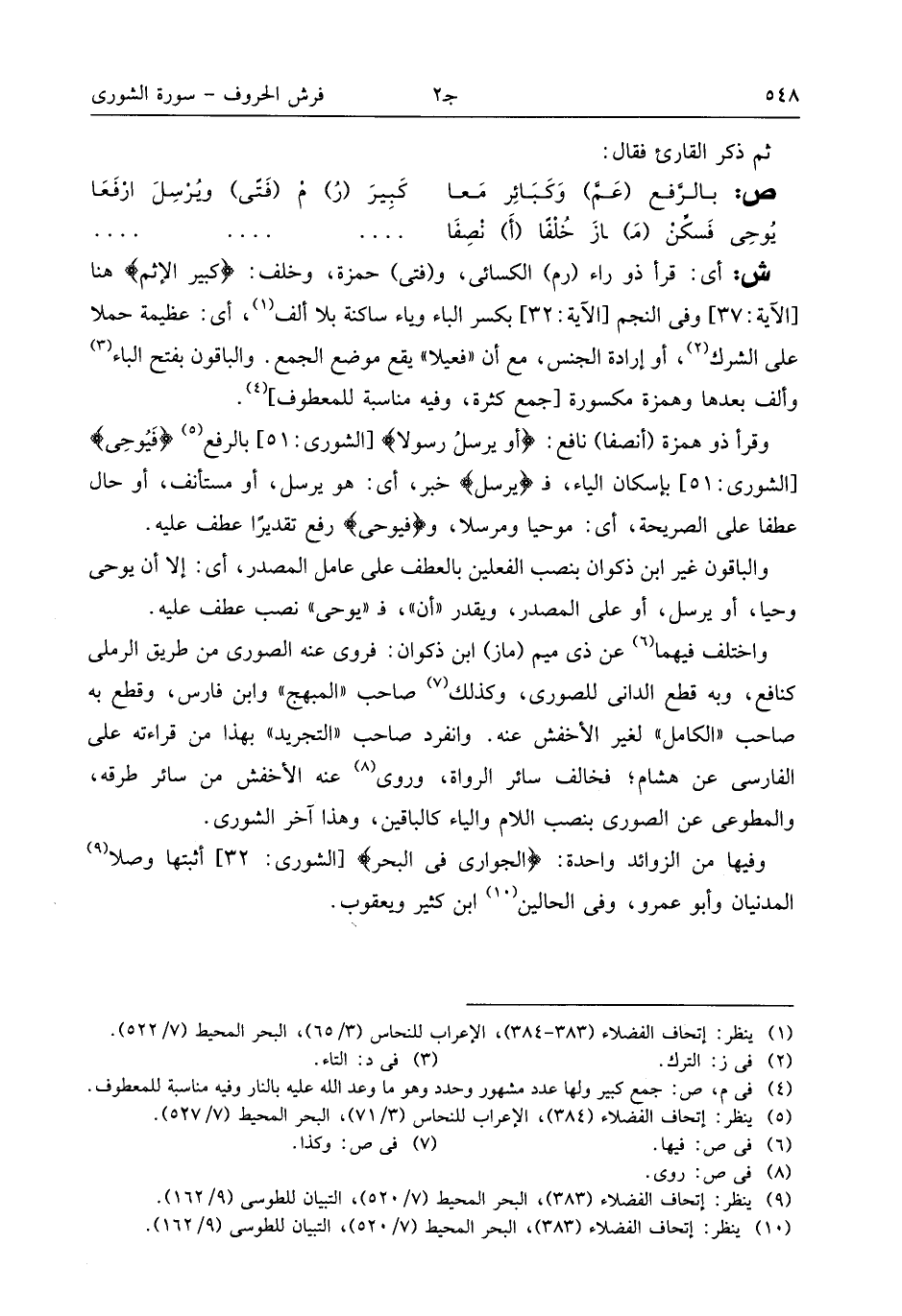 (¬10) ينظر: إتحاف الفضلاء (383)، البحر المحيط (7/ 520)، التبيان للطوسى (9/ 162).