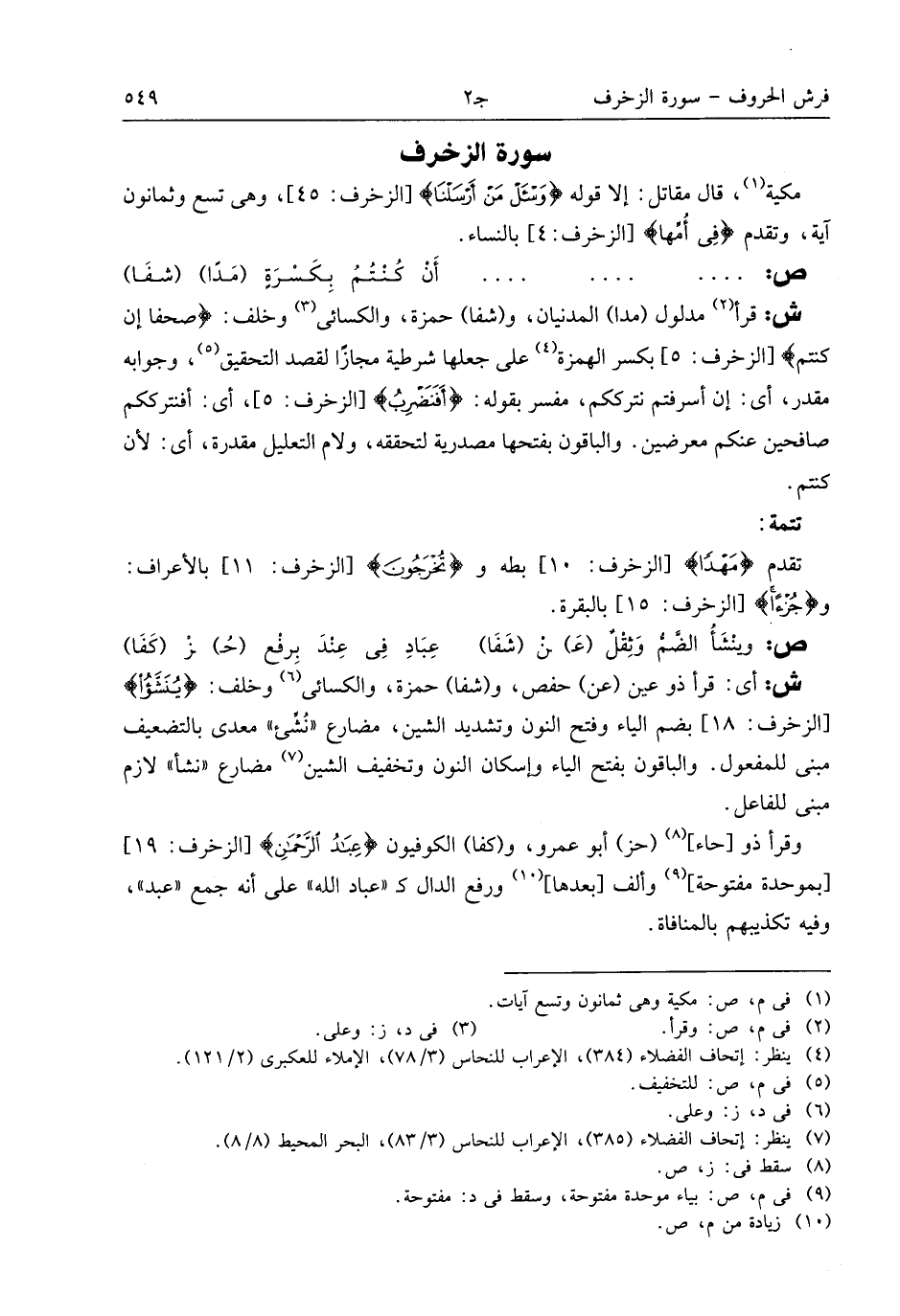 (¬7) ينظر: إتحاف الفضلاء (385)، الإعراب للنحاس (3/ 83)، البحر المحيط (8/ 8).