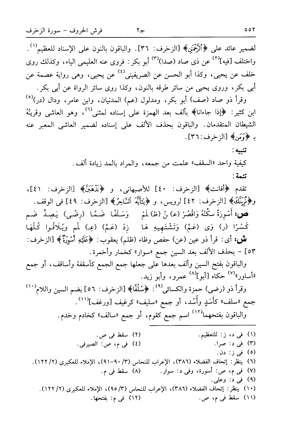 تقدم أفانت [الزخرف: 40] للأصبهانى، ونذهبنّ [الزخرف: 41]، ونرينّك [الزخرف: 42] لرويس، ويأيّه السّاحر [الزخرف: 49] فى الوقف.