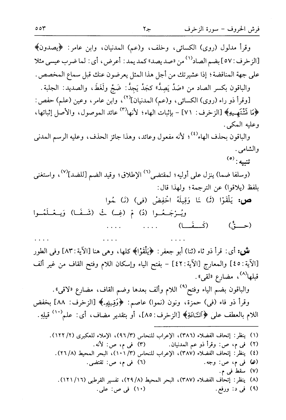 (¬8) ينظر: إتحاف الفضلاء (387)، البحر المحيط (8/ 29)، تفسير القرطبى (16/ 121).