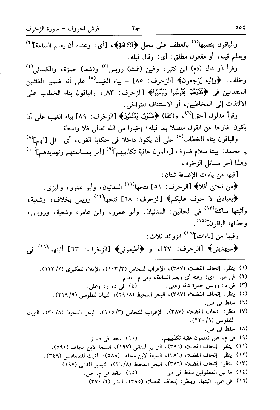 (¬5) ينظر: إتحاف الفضلاء (387)، البحر المحيط (8/ 29)، التبيان للطوسى (9/ 219).