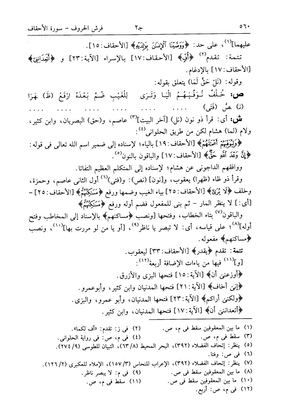 (¬5) ينظر: إتحاف الفضلاء (392)، البحر المحيط (8/ 63)، التبيان للطوسى (9/ 274).