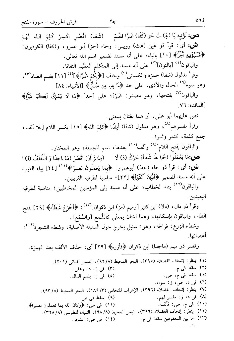 (¬12) ينظر: إتحاف الفضلاء (396)، البحر المحيط (8/ 98)، التبيان للطوسى (9/ 328).