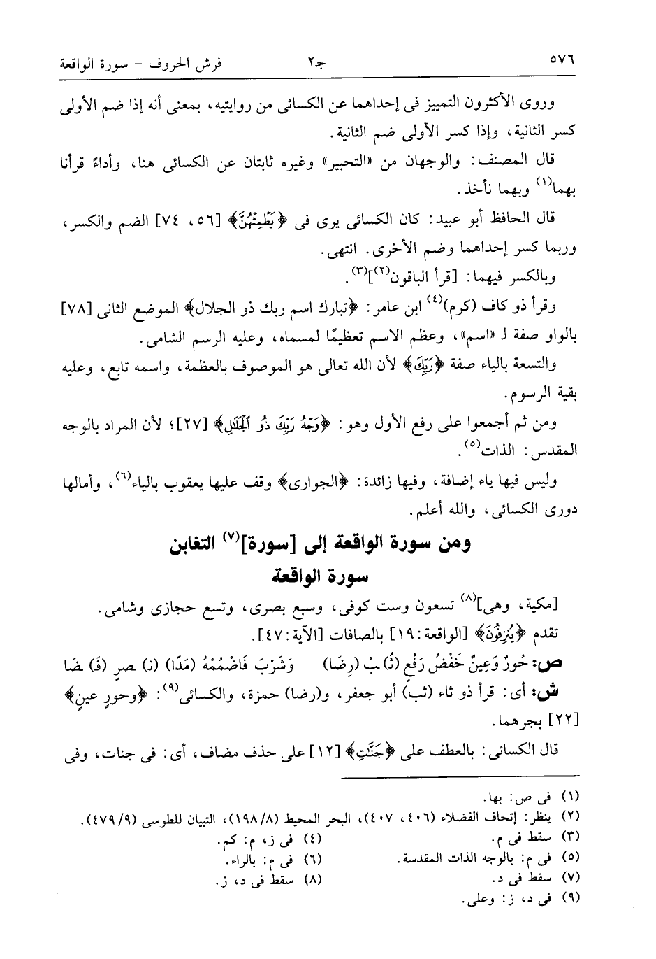 (¬2) ينظر: إتحاف الفضلاء (406، 407)، البحر المحيط (8/ 198)، التبيان للطوسى (9/ 479).
