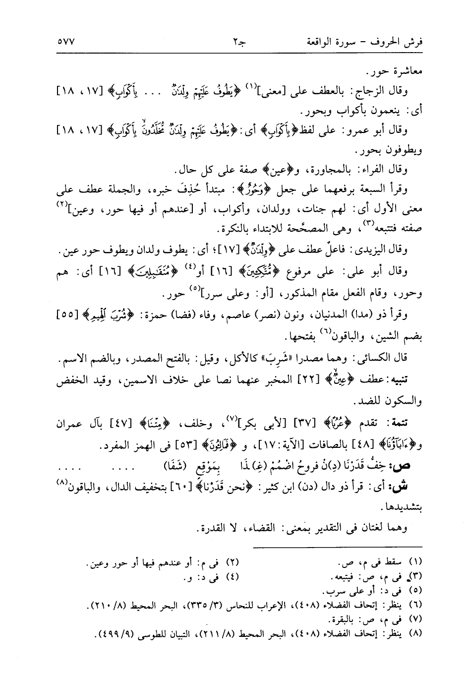 (¬8) ينظر: إتحاف الفضلاء (408)، البحر المحيط (8/ 211)، التبيان للطوسى (9/ 499).