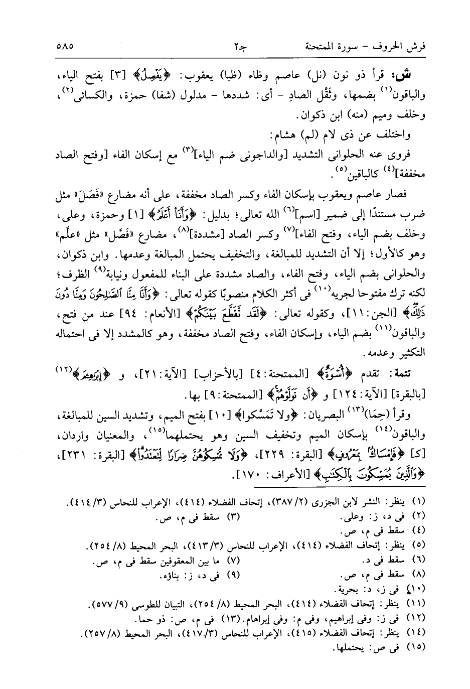 (¬1) ينظر: النشر لابن الجزرى (2/ 387)، إتحاف الفضلاء (414)، الإعراب للنحاس (3/ 414).