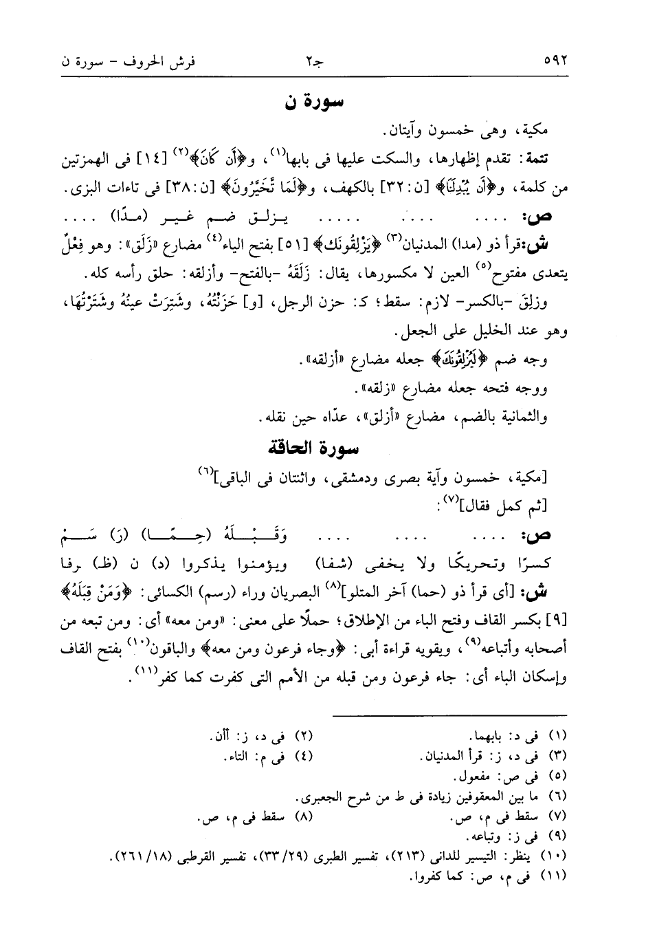 (¬10) ينظر: التيسير للدانى (213)، تفسير الطبرى (29/ 33)، تفسير القرطبى (18/ 261).