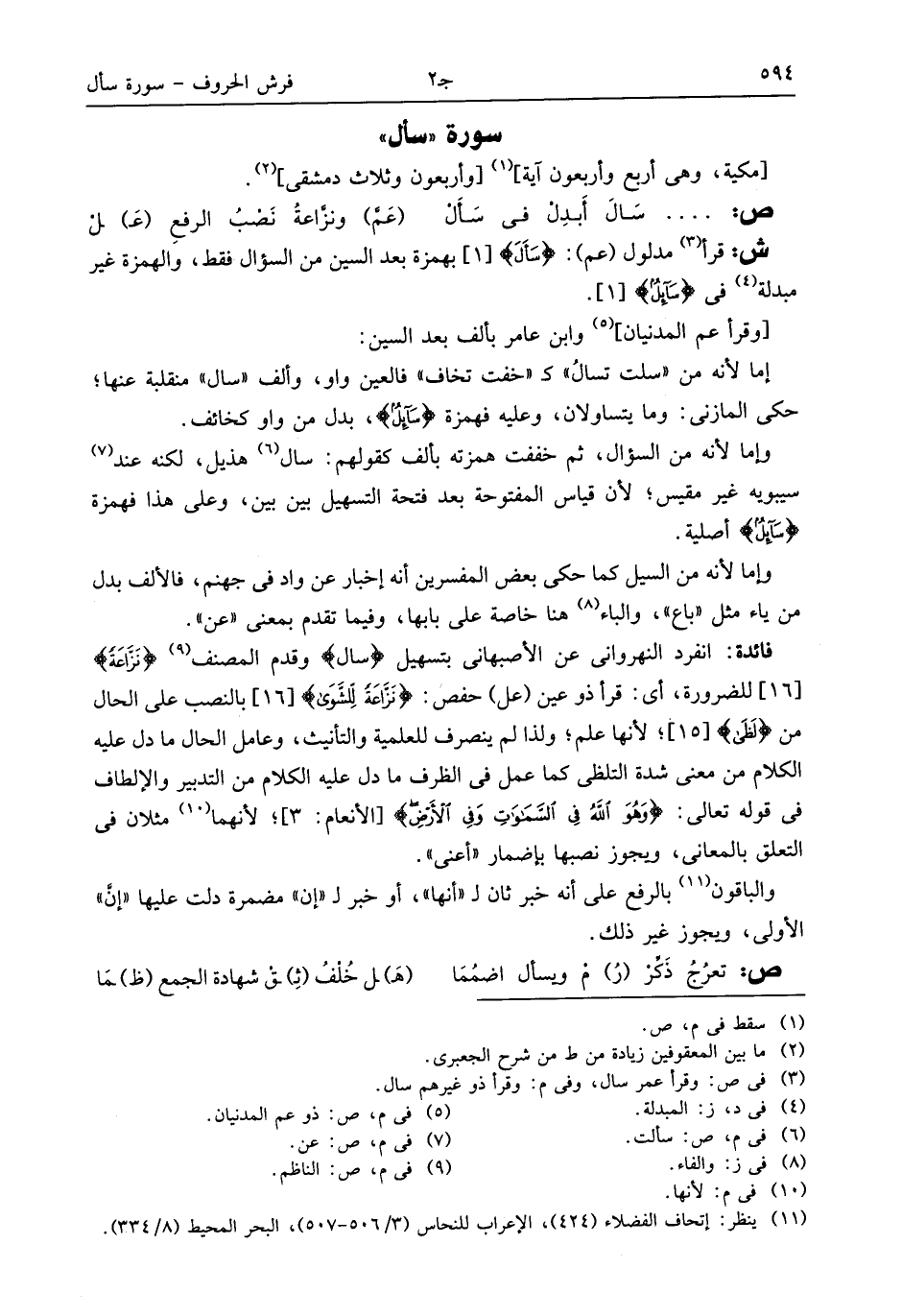 (¬11) ينظر: إتحاف الفضلاء (424)، الإعراب للنحاس (3/ 506 - 507)، البحر المحيط (8/ 334).