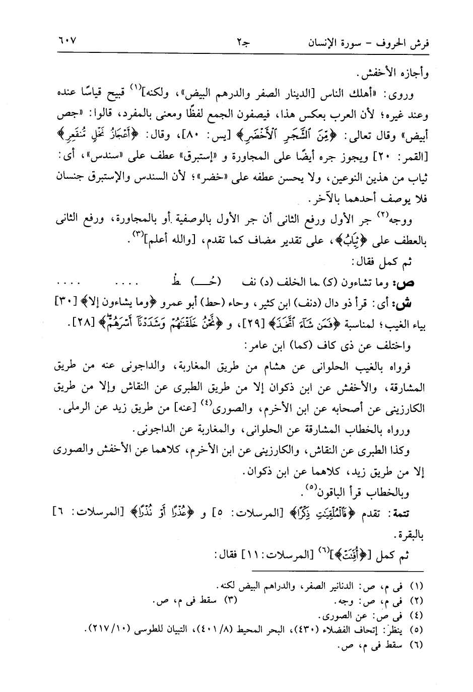 (¬5) ينظر: إتحاف الفضلاء (430)، البحر المحيط (8/ 401)، التبيان للطوسى (10/ 217).