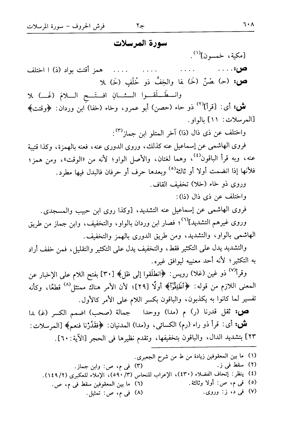 ش: أى: [قرأ] (¬2) ذو حاء (حصن) أبو عمرو، وخاء (خفا) ابن وردان: وقتت [المرسلات: 11] بالواو.