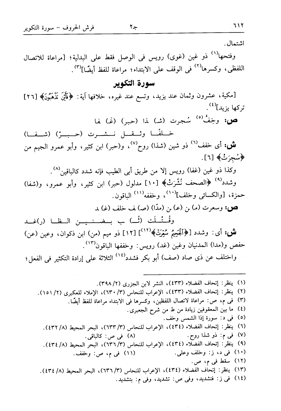 (¬13) ينظر: إتحاف الفضلاء (434)، الإعراب للنحاس (3/ 636)، البحر المحيط (8/ 434).