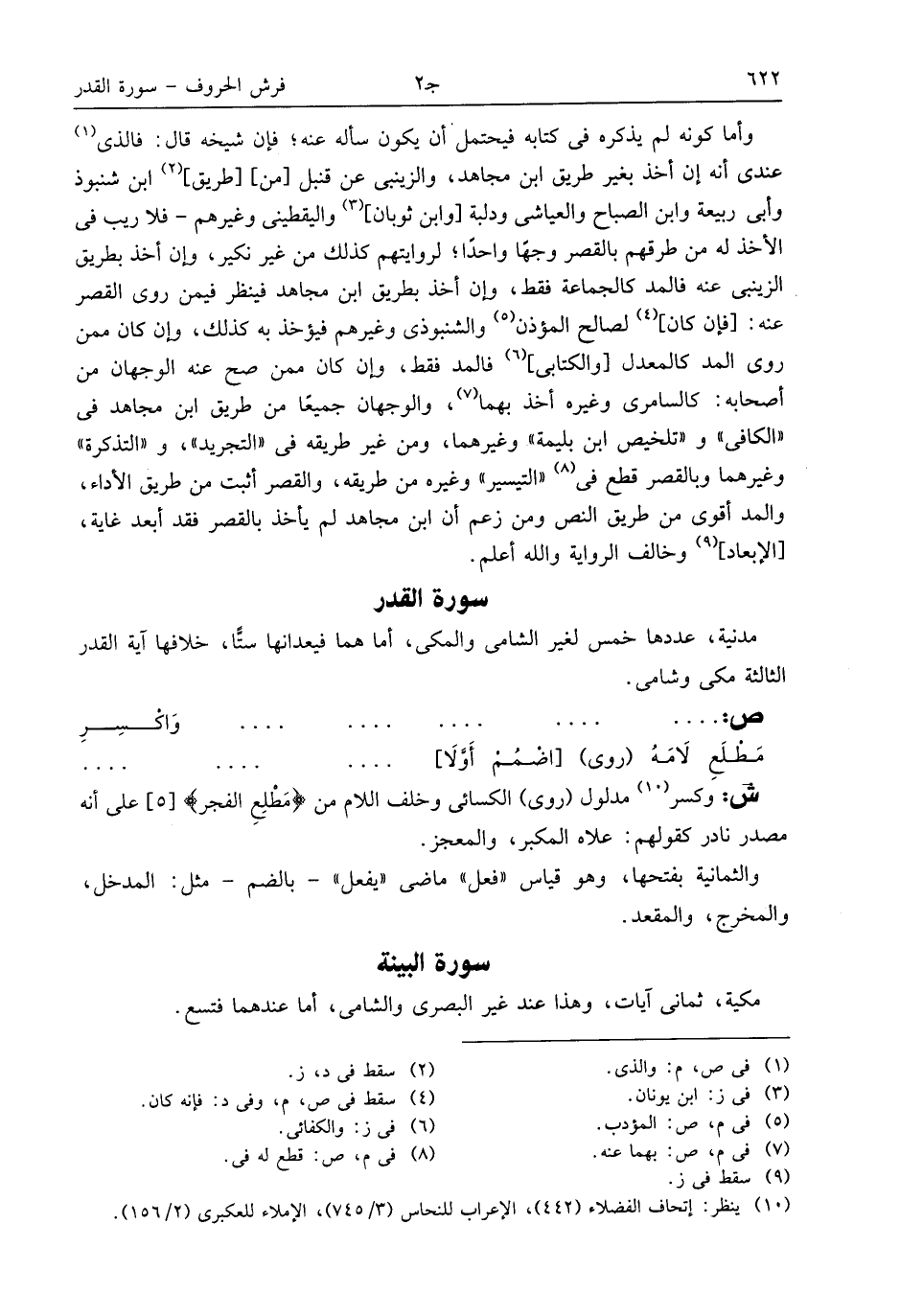 (¬10) ينظر: إتحاف الفضلاء (442)، الإعراب للنحاس (3/ 745)، الإملاء للعكبرى (2/ 156).