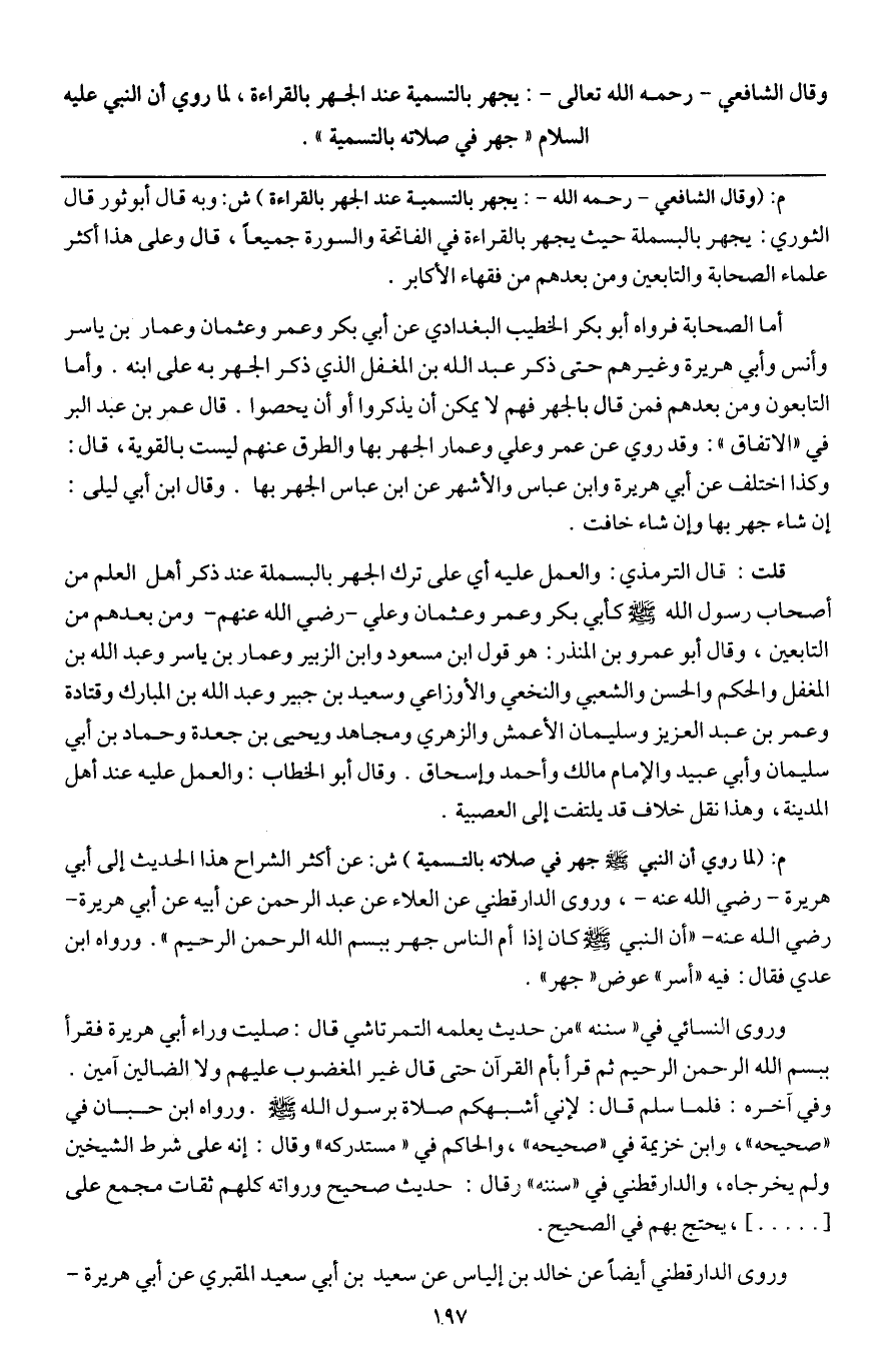 قلت: قال الترمذي: والعمل عليه؛ أي على ترك الجهر بالبسملة عند ذكر أهل العلم من أصحاب رسول الله - صَلَّى اللَّهُ عَلَيْهِ وَسَلَّمَ - كأبي بكر وعمر وعثمان وعلي - رَضِيَ اللَّهُ عَنْهُمْ - ومن بعدهم من التابعين، وقال أبو عمرو بن المنذر: هو قول ابن مسعود وابن الزبير وعمار بن ياسر وعبد الله بن المغفل والحكم والحسن والشعبي والنخعي والأوزاعي وسعيد بن جبير وعبد الله بن المبارك وقتادة وعمر بن عبد العزيز وسليمان الأعمش والزهري ومجاهد ويحيى بن جعدة وحماد بن أبي سليمان وأبي عبيد والإمام مالك وأحمد وإسحاق. وقال أبو الخطاب: والعمل عليه عند أهل المدينة، وهذا نقل خلاف قد يلتفت إلى العصبية.