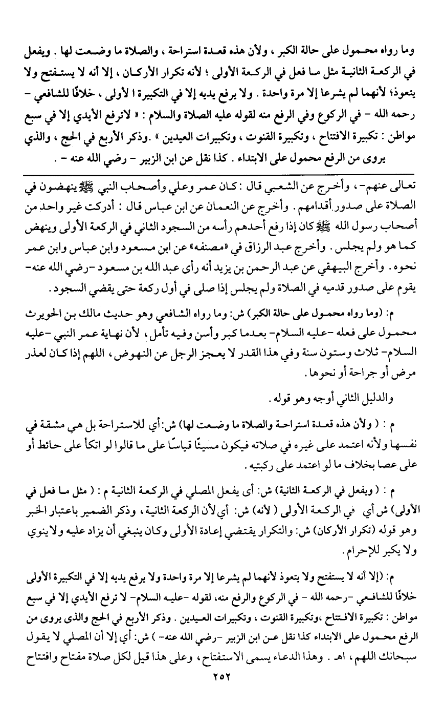 ـــــــــــــــــــــــــــــQتعالى عنهم وأخرج عن الشعبي قال: كان عمر وعلي وأصحاب النبي - صَلَّى اللَّهُ عَلَيْهِ وَسَلَّمَ - ينهضون في الصلاة على صدور أقدامهم. وأخرج عن النعمان عن ابن عباس قال: أدركت غير واحد من أصحاب رسول الله - صَلَّى اللَّهُ عَلَيْهِ وَسَلَّمَ - كان إذا رفع أحدهم رأسه من السجود الثاني في الركعة الأولى ينهض كما هو ولم يجلس. وأخرج عبد الرزاق في "مصنفه " عن ابن مسعود وابن عباس وابن عمر نحوه. وأخرج البيهقي عن عبد الرحمن بن يزيد أنه رأى عبد الله بن مسعود - رَضِيَ اللَّهُ عَنْهُ - يقوم على صدور قدميه في الصلاة ولم يجلس إذا صلى في أول ركعة حتى يقضي السجود.