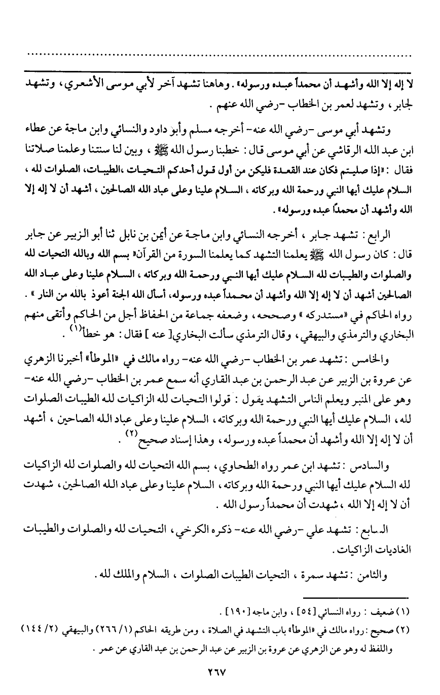 ـــــــــــــــــــــــــــــQلا إله إلا الله وأشهد أن محمدا عبده ورسوله» ". وهاهنا تشهد آخر لأبي موسى الأشعرى، وتشهد لجابر، وتشهد لعمر بن الخطاب - رَضِيَ اللَّهُ عَنْهُمْ -.