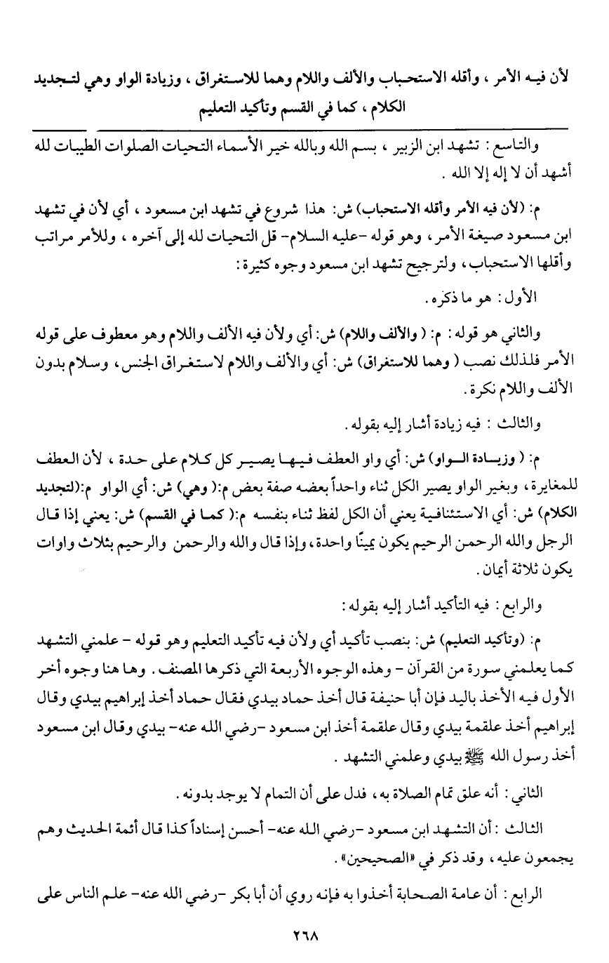 الثالث: أن تشهد ابن مسعود - رَضِيَ اللَّهُ عَنْهُ - أحسن إسنادا كذا قال أئمة الحديث وهم يجمعون عليه، وقد ذكر في " الصحيحين ".