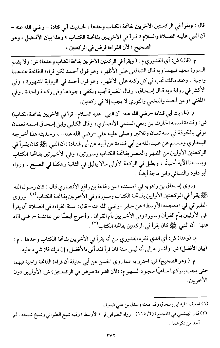 ـــــــــــــــــــــــــــــQ [القراءة في الأخيرتين بفاتحة الكتاب فقط]