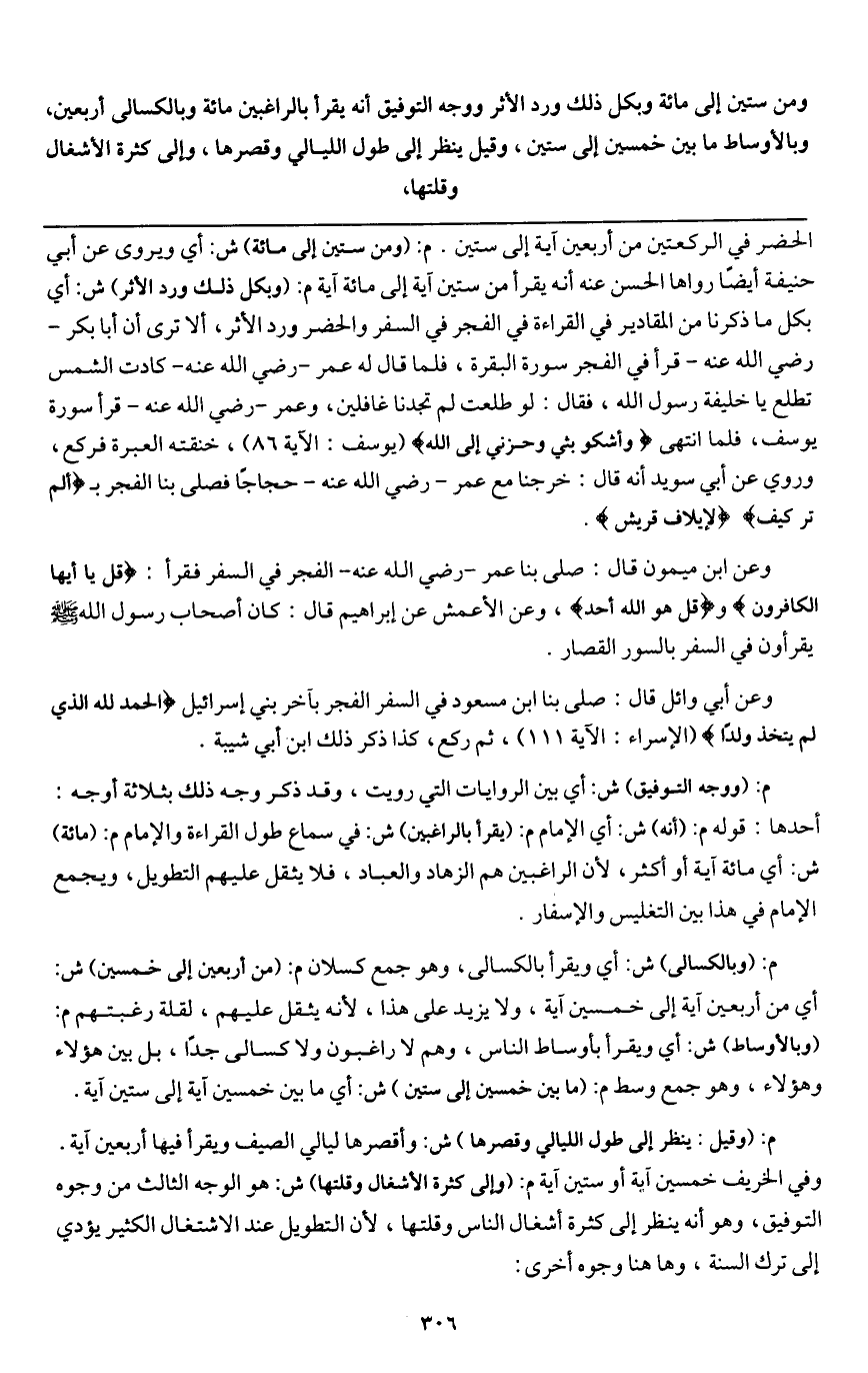 م: (وقيل: ينظر إلى طول الليالي وقصرها) ش: وأقصرها ليالي الصيف، ويقرأ فيها أربعين آية. وفي الخريف خمسين آية أو ستين آية م: (وإلى كثرة الأشغال وقلتها) ش: هو الوجه الثالث من وجوه التوفيق، وهو أنه ينظر إلى كثرة أشغال الناس وقلتها؛ لأن التطويل عند الاشتغال الكثير يؤدي إلى ترك السنة، وهاهنا وجوه أخرى.