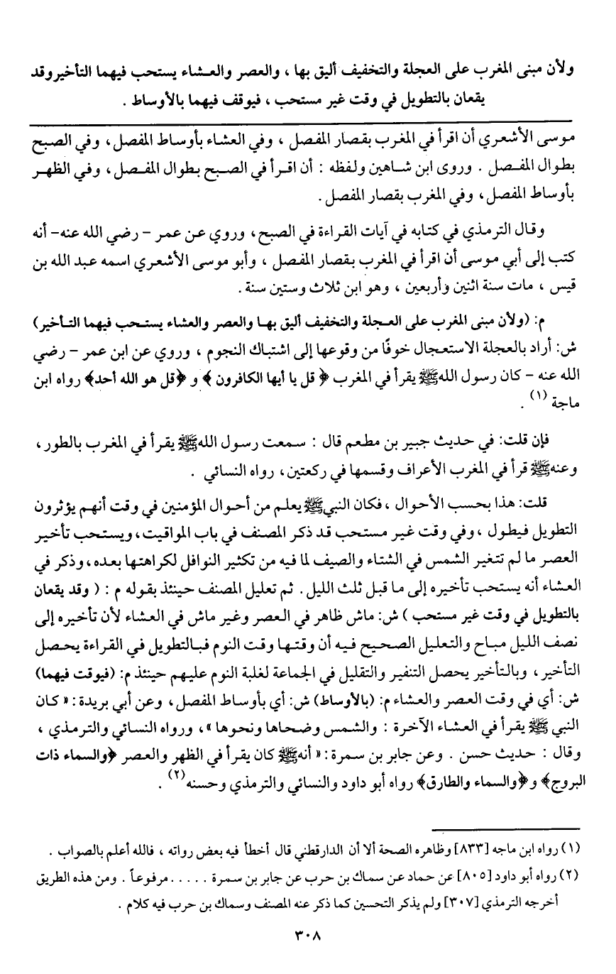 ـــــــــــــــــــــــــــــQموسى الأشعري أن اقرأ في المغرب بقصار المفصل، وفي العشاء بأوساط المفصل، وفي الصبح بطوال المفصل. وروى ابن شاهين ولفظه: أن اقرأ في الصبح بطوال المفصل، وفي الظهر بأوساط المفصل، وفي المغرب بقصار المفصل.