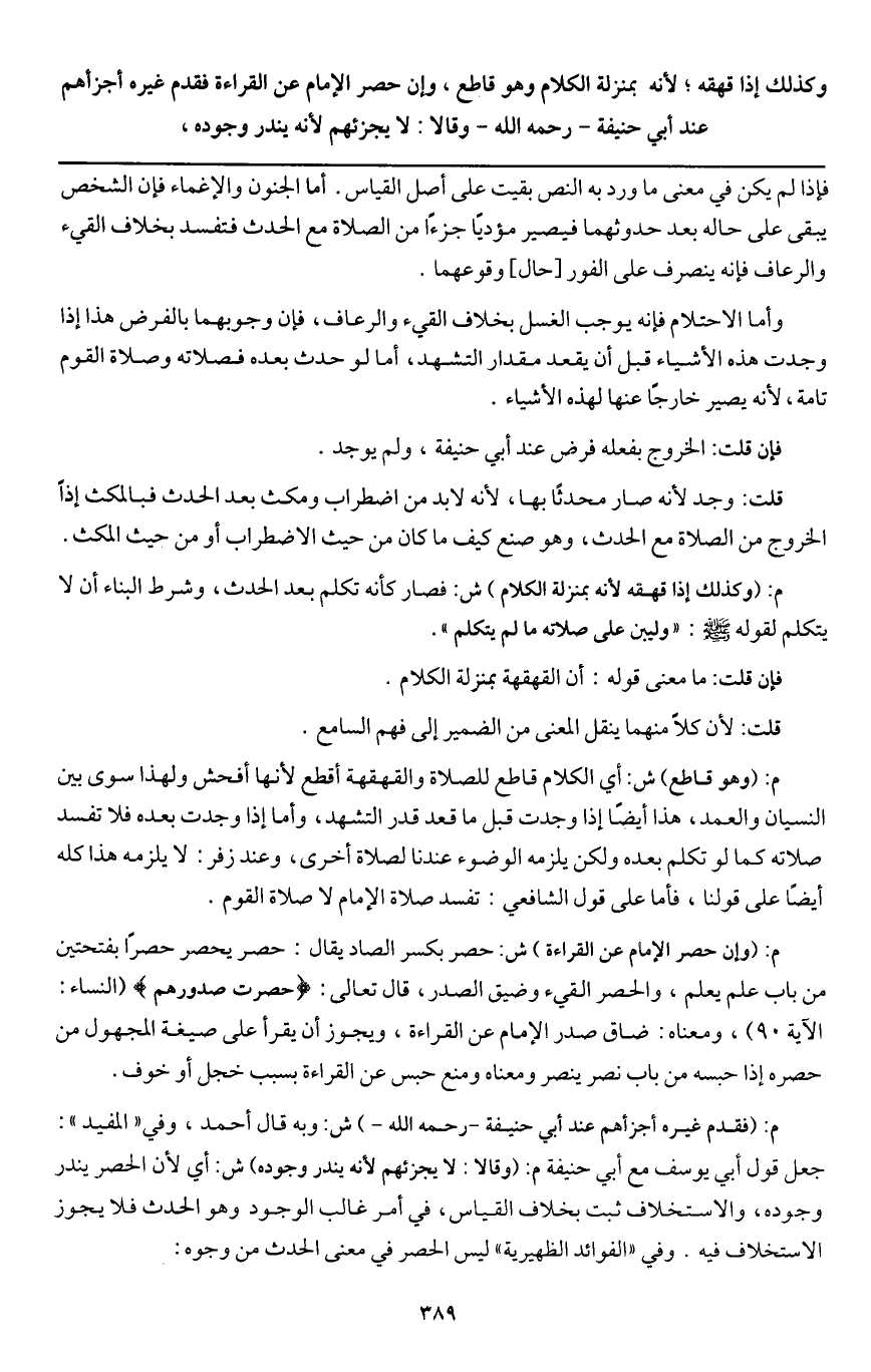 ـــــــــــــــــــــــــــــQفإذا لم يكن في معنى ما ورد به النص بقيت على أصل القياس. أما الجنون والإغماء فإن الشخص يبقى على حاله بعد حدوثهما فيصير مؤديا جزءًا من الصلاة مع الحدث فتفسد بخلاف القيء والرعاف فإنه ينصرف على الفور [حال] وقوعهما.