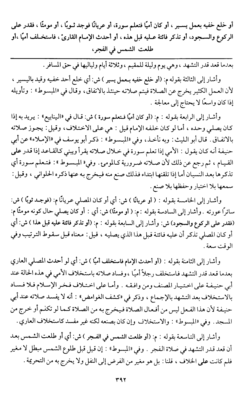 وأشار إلى التاسعة بقوله: م: (أو طلعت الشمس في الفجر) ش: أي أو طلعت الشمس بعد أن قعد قدر التشهد في صلاة الفجر. وفي " المبسوط ": إن قيل طلوع الشمس مبطل لا مغير فلم كانت على الخلاف، قلنا: بل هو مغير من الفرض إلى النفل ولا يخرج به من التحريمة.
