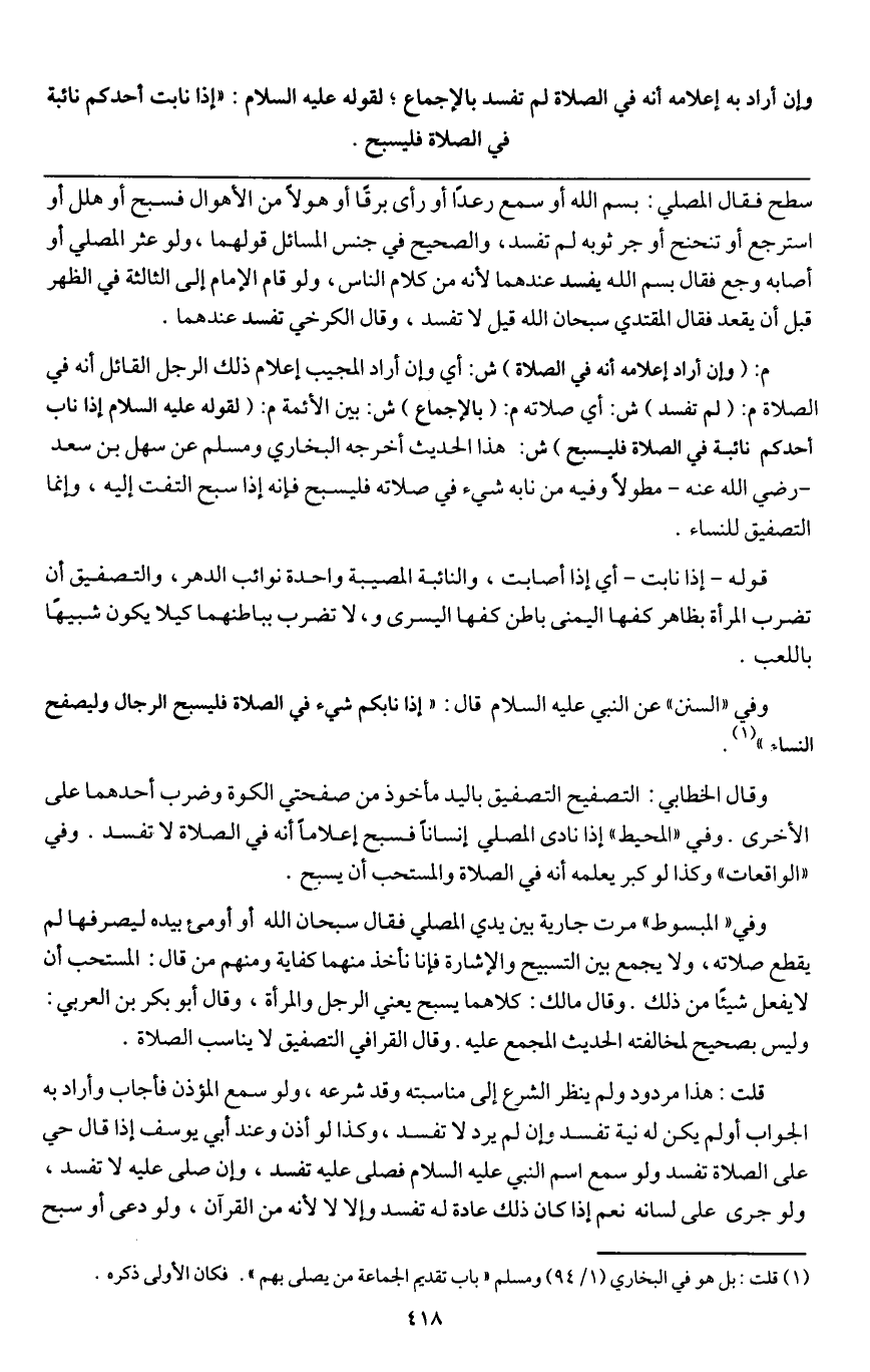 وفي " السنن " عن النبي - عَلَيْهِ السَّلَامُ - قال: «إذا نابكم شيء في الصلاة فليسبح الرجال وليصفح النساء» .