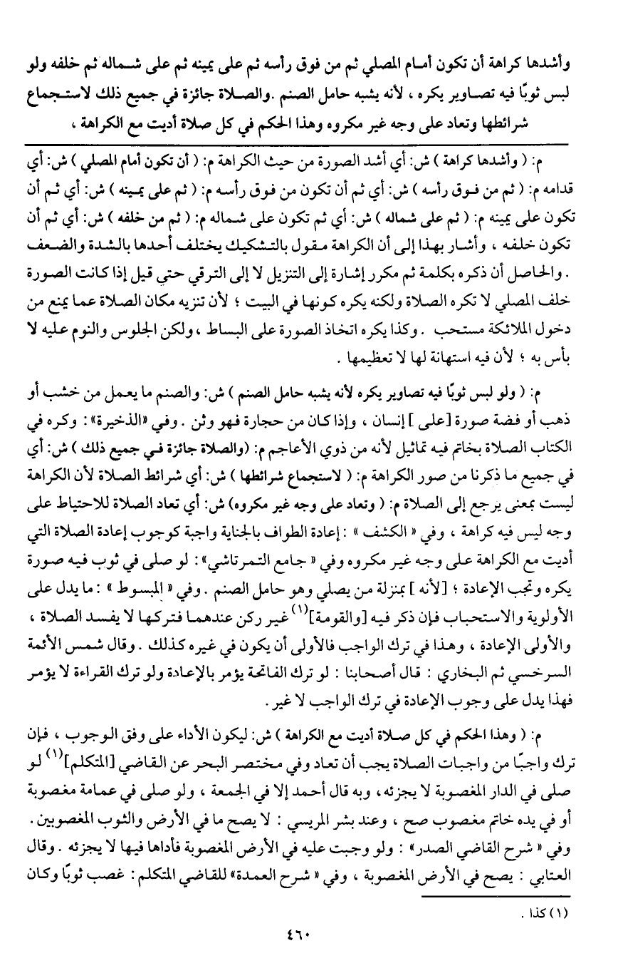 م: (ولو لبس ثوبا فيه تصاوير يكره؛ لأنه يشبه حامل الصنم) ش: والصنم ما يعمل من خشب أو ذهب أو فضة صورة [على] إنسان، وإذا كان من حجارة فهو وثن. وفي " الذخيرة ": وكره في الكتاب الصلاة بخاتم فيه تماثيل لأنه من ذوي الأعاجم م: (والصلاة جائزة في جميع ذلك) ش: أي في جميع ما ذكرنا من صور الكراهة م: (لاستجماع شرائطها) ش: أي شرائط الصلاة لأن الكراهة ليست بمعنى يرجع إلى الصلاة م: (وتعاد على وجه غير مكروه) ش: أي تعاد الصلاة للاحتياط على وجه ليس فيه كراهة، وفي " الكشف ": إعادة الطواف بالجناية واجبة كوجوب إعادة الصلاة التي أديت مع الكراهة على وجه غير مكروه، وفي " جامع التمرتاشي ": لو صلى في ثوب فيه صورة يكره وتجب الإعادة؛ [لأنه] بمنزلة من يصلي وهو حامل الصنم. وفي " المبسوط ": ما يدل على الأولوية والاستحباب فإن ذكر فيه [والقومة] غير ركن عندهما فتركها لا يفسد الصلاة، والأولى الإعادة، وهذا في ترك الواجب فالأولى أن يكون في غيره كذلك. وقال شمس الأئمة السرخسي ثم البخاري: قال أصحابنا: لو ترك الفاتحة يؤمر بالإعادة ولو ترك القراءة لا يؤمر، فهذا يدل على وجوب الإعادة في ترك الواجب لا غير.