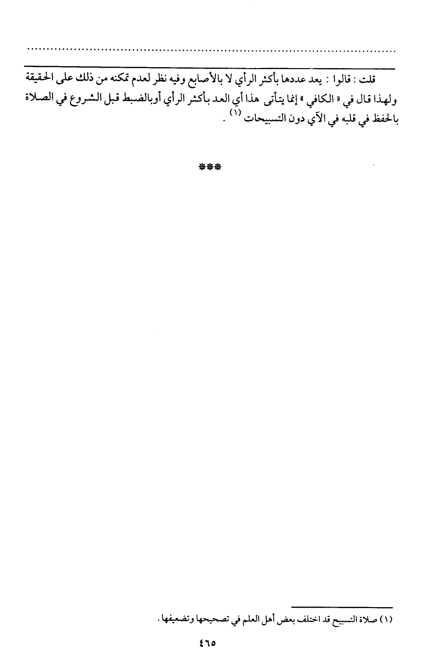 ـــــــــــــــــــــــــــــQقلت: قالوا: يعد عددها بأكثر الرأي لا بالأصابع، وفيه نظر لعدم تمكنه من ذلك على الحقيقة، ولهذا قال في " الكافي ": إنما يتأتى هذا أي العد بأكثر الرأي أو بالضبط قبل الشروع في الصلاة بالحفظ في قلبه في الآي دون التسبيحات.