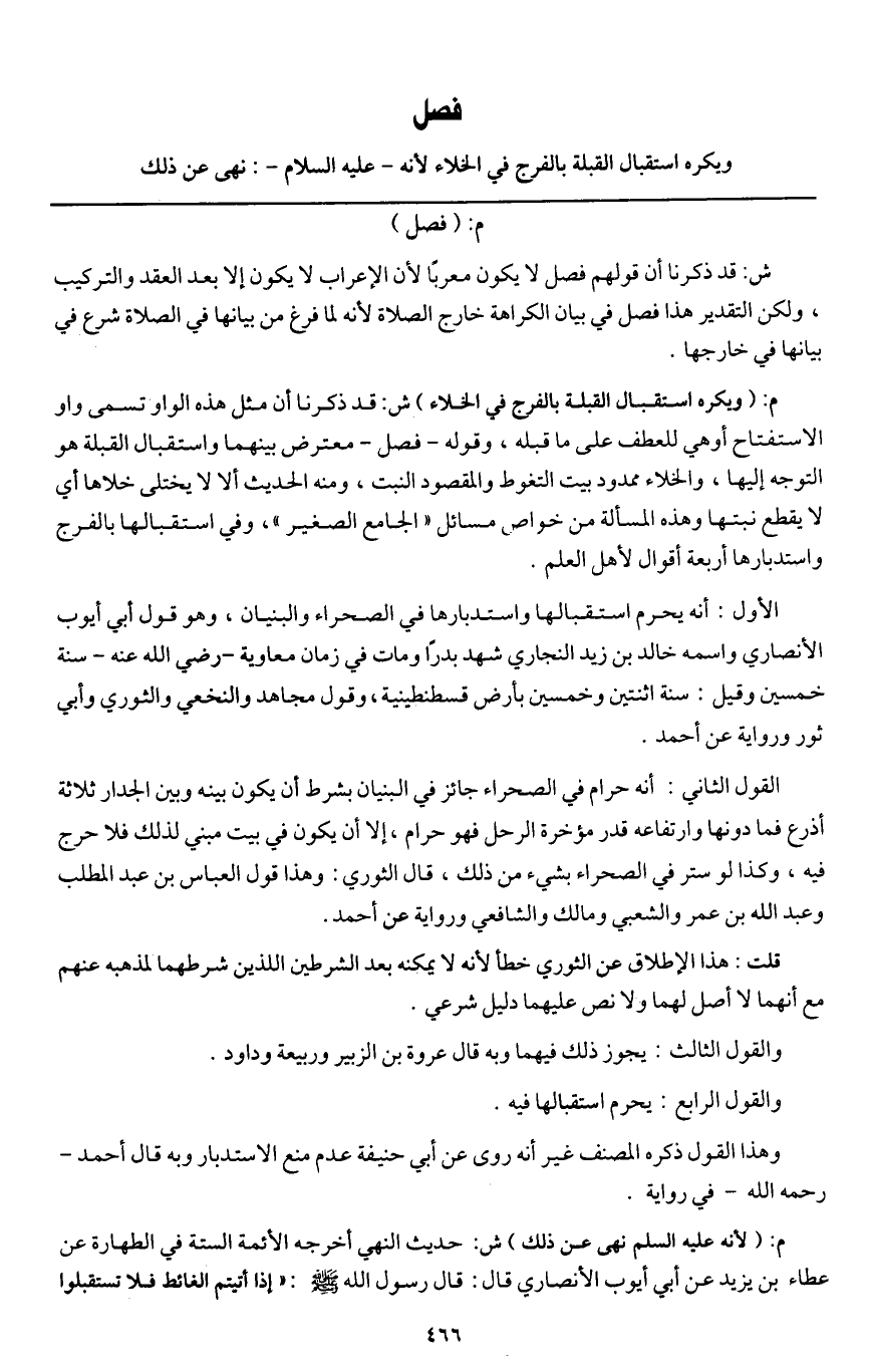 ـــــــــــــــــــــــــــــQ [فصل ويكره استقبال القبلة بالفرج في الخلاء]