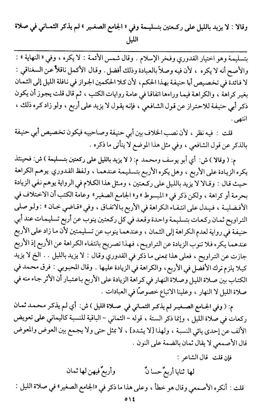 قلت: أنكره الأصمعي وقال هو خطأ، وعلى هذا ما ذكر في " الجامع الصغير " في صلاة الليل: