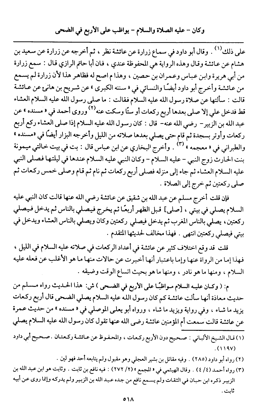 «وكان - عَلَيْهِ الصَّلَاةُ وَالسَّلَامُ - يواظب على الأربع في الضحى»