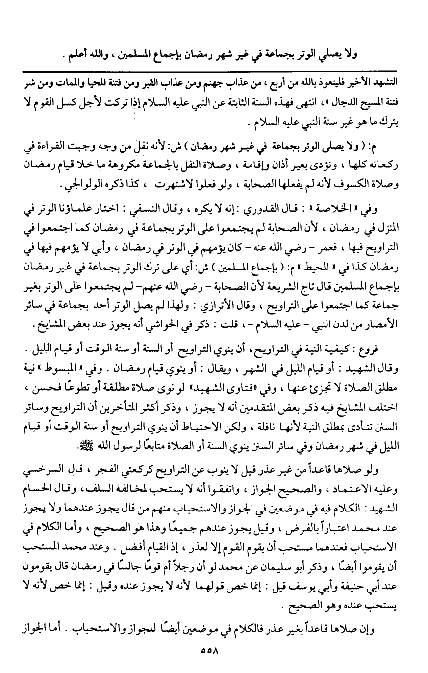 ولا يصلي الوتر بجماعة في غير شهر رمضان بإجماع المسلمين، والله أعلم.