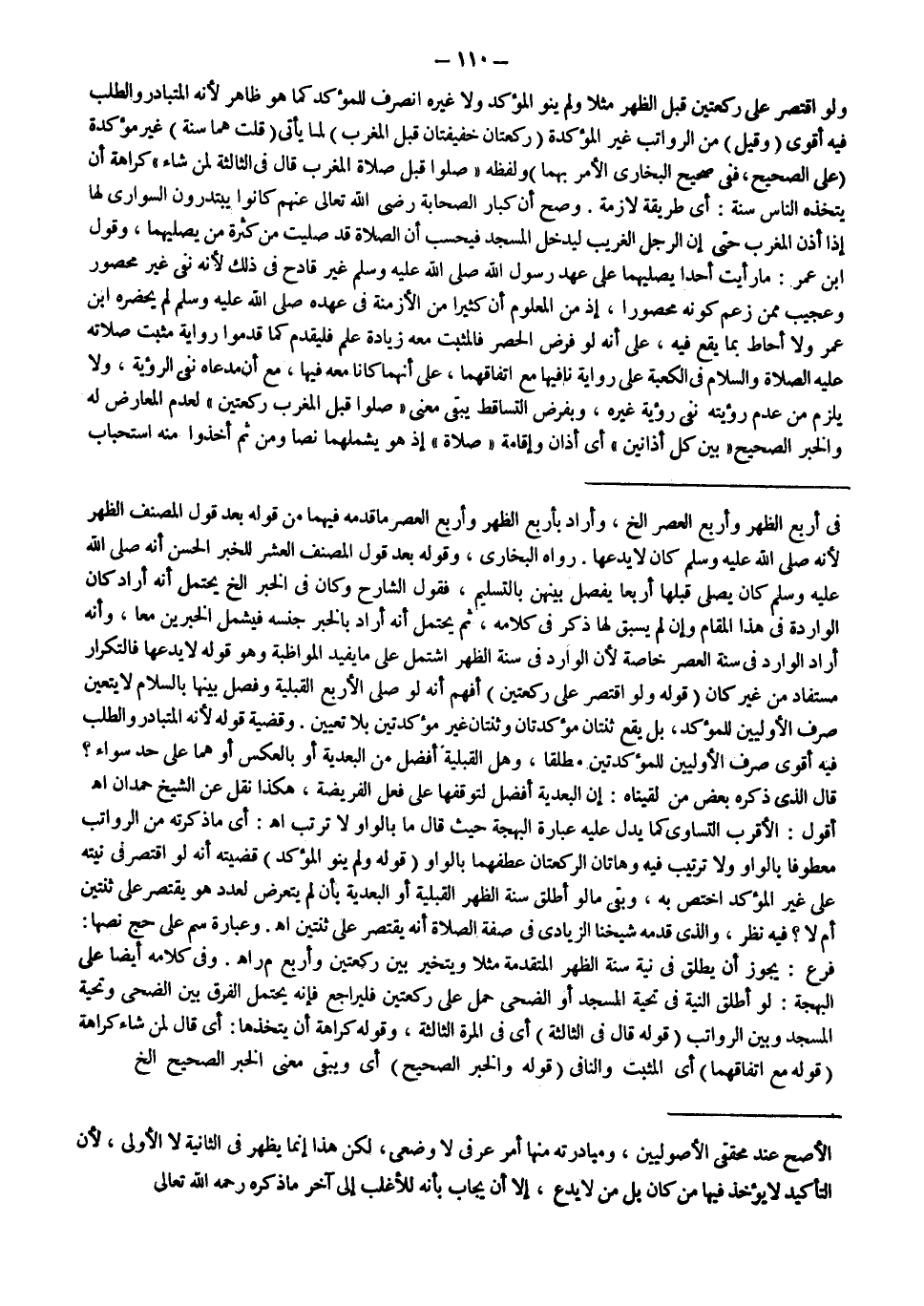 وَعِبَارَةُ سم عَلَى حَجّ نَصُّهَا: فَرْعٌ: يَجُوزُ أَنْ يُطْلَقَ فِي نِيَّةِ سُنَّةِ الظُّهْرِ الْمُتَقَدِّمَةِ مَثَلًا وَيَتَخَيَّرَ بَيْنَ رَكْعَتَيْنِ وَأَرْبَعٍ م ر اهـ. وَفِي كَلَامِهِ أَيْضًا عَلَى الْبَهْجَةِ: لَوْ أَطْلَقَ النِّيَّةَ فِي تَحِيَّةِ الْمَسْجِدِ أَوْ الضُّحَى حُمِلَ عَلَى رَكْعَتَيْنِ فَلْيُرَاجِعْ فَإِنَّهُ يَحْتَمِلُ الْفَرْقَ بَيْنَ الضُّحَى وَتَحِيَّةِ الْمَسْجِدِ وَبَيْنَ الرَّوَاتِبِ (قَوْلُهُ: قَالَ فِي الثَّالِثَةِ) أَيْ فِي الْمَرَّةِ الثَّالِثَةِ، وَقَوْلُهُ كَرَاهَةَ أَنْ يَتَّخِذَهَا: أَيْ قَالَ لِمَنْ شَاءَ كَرَاهَةً (قَوْلُهُ: مَعَ اتِّفَاقِهِمَا) أَيْ الْمُثْبِتِ وَالنَّافِي (قَوْلُهُ: وَالْخَبَرُ الصَّحِيحُ) أَيْ وَيَبْقَى مَعْنَى الْخَبَرِ الصَّحِيحِ إلَخْ