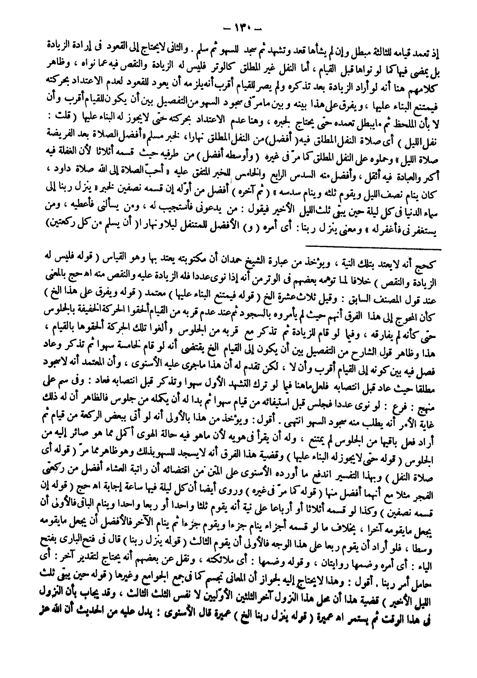 وَالثَّانِي لَا يَحْتَاجُ إلَى الْقُعُودِ فِي إرَادَةِ الزِّيَادَةِ بَلْ يَمْضِي فِيهَا كَمَا لَوْ نَوَاهَا قَبْلَ الْقِيَامِ، أَمَّا النَّفَلُ غَيْرُ الْمُطْلَقِ كَالْوِتْرِ فَلَيْسَ لَهُ الزِّيَادَةُ وَالنَّقْصُ فِيهِ عَمَّا نَوَاهُ، وَظَاهِرُ كَلَامِهِمْ هُنَا أَنَّهُ لَوْ أَرَادَ الزِّيَادَةَ بَعْدَ تَذَكُّرِهِ وَلَمْ يَصِرْ لِلْقِيَامِ أَقْرَبَ أَنَّهُ يَلْزَمُهُ أَنْ يَعُودَ لِلْقُعُودِ لِعَدَمِ الِاعْتِدَادِ بِحَرَكَتِهِ فَيَمْتَنِعُ الْبِنَاءُ عَلَيْهَا، وَيُفَرَّقُ عَلَى هَذَا بَيْنَهُ وَبَيْنَ مَا مَرَّ فِي سُجُودِ السَّهْوِ مِنْ التَّفْصِيلِ بَيْنَ أَنْ يَكُونَ لِلْقِيَامِ أَقْرَبَ وَأَنْ لَا بِأَنَّ الْمَلْحَظَ ثُمَّ مَا يُبْطِلُ تَعَمُّدُهُ حَتَّى يَحْتَاجَ لِجَبْرِهِ، وَهُنَا عَدَمُ الِاعْتِدَادِ بِحَرَكَتِهِ حَتَّى لَا يَجُوزُ لَهُ الْبِنَاءُ عَلَيْهَا.