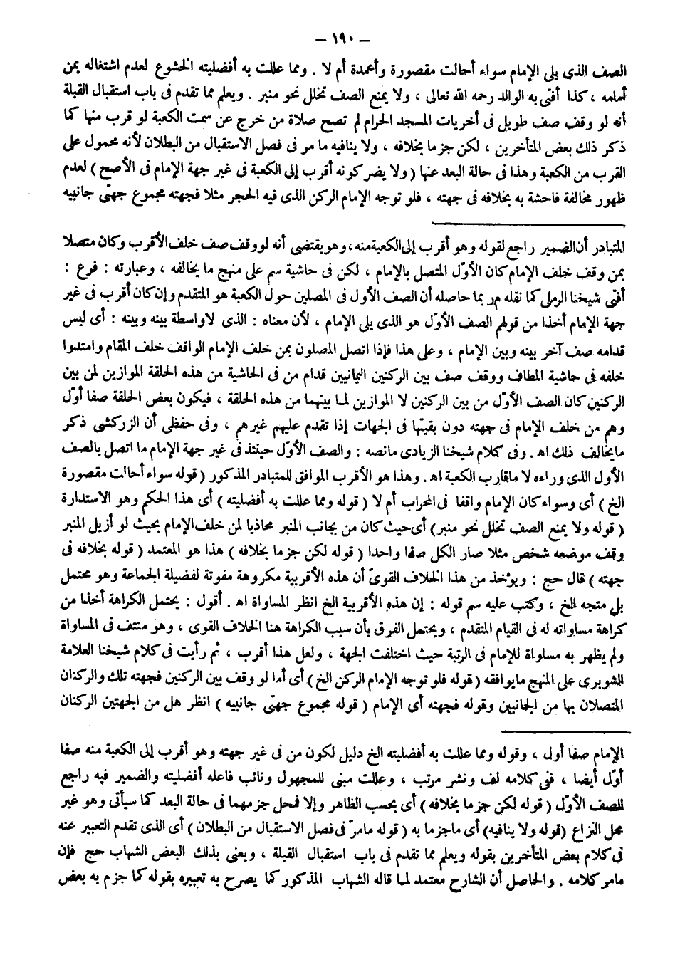 وَفِي كَلَامِ شَيْخِنَا الزِّيَادِيِّ مَا نَصُّهُ: وَالصَّفُّ الْأَوَّلُ حِينَئِذٍ فِي غَيْرِ جِهَةِ الْإِمَامِ مَا اتَّصَلَ بِالصَّفِّ الْأَوَّلِ الَّذِي وَرَاءَهُ مَا قَارَبَ الْكَعْبَةَ اهـ. وَهَذَا هُوَ الْأَقْرَبُ الْمُوَافِقُ لِلْمُتَبَادَرِ الْمَذْكُورِ.