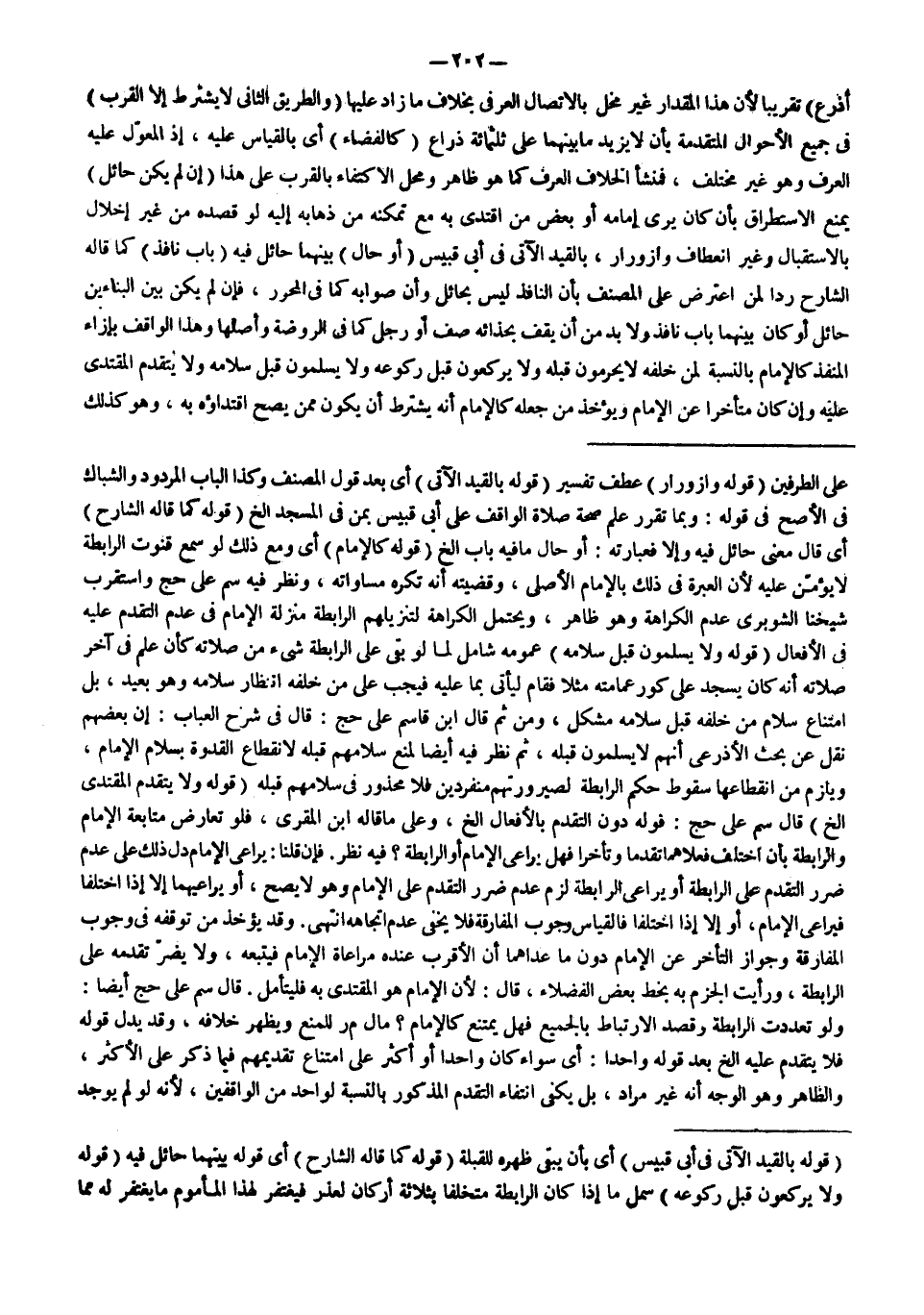 وَقَدْ يُؤْخَذُ مِنْ تَوَقُّفِهِ فِي وُجُوبِ الْمُفَارَقَةِ وَجَوَازِ التَّأَخُّرِ عَنْ الْإِمَامِ دُونَ مَا عَدَاهُمَا أَنَّ الْأَقْرَبَ عِنْدَهُ مُرَاعَاةُ الْإِمَامِ فَيَتْبَعُهُ، وَلَا يَضُرُّ تَقَدُّمُهُ عَلَى الرَّابِطَةِ، وَرَأَيْت الْجَزْمَ بِهِ بِخَطِّ بَعْضِ الْفُضَلَاءِ، قَالَ: لِأَنَّ الْإِمَامَ هُوَ الْمُقْتَدَى بِهِ فَلْيُتَأَمَّلْ.