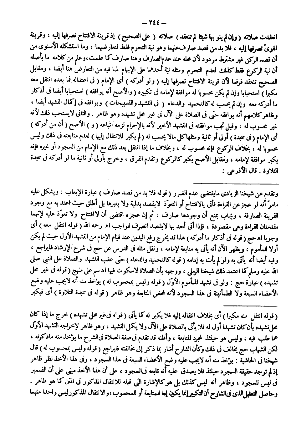 (قَوْلُهُ: فِي أَذْكَارِ مَا أَدْرَكَهُ) هَذَا قَدْ يُخْرِجُ رَفْعَ الْيَدَيْنِ عِنْدَ قِيَامِ الْإِمَامِ مِنْ التَّشَهُّدِ الْأَوَّلِ حَيْثُ لَمْ يَكُنْ أَوَّلًا لِلْمَأْمُومِ، وَيَظْهَرُ الْآنَ أَنَّهُ يَأْتِي بِهِ مُتَابَعَةً لِإِمَامِهِ، وَنُقِلَ مِثْلُهُ فِي الدَّرْسِ عَنْ حَجّ فِي شَرْحِ الْإِرْشَادِ فَلْيُرَاجَعْ، وَفِيهِ أَيْضًا أَنَّهُ يَأْتِي بِهِ وَلَوْ لَمْ يَأْتِ بِهِ إمَامُهُ.