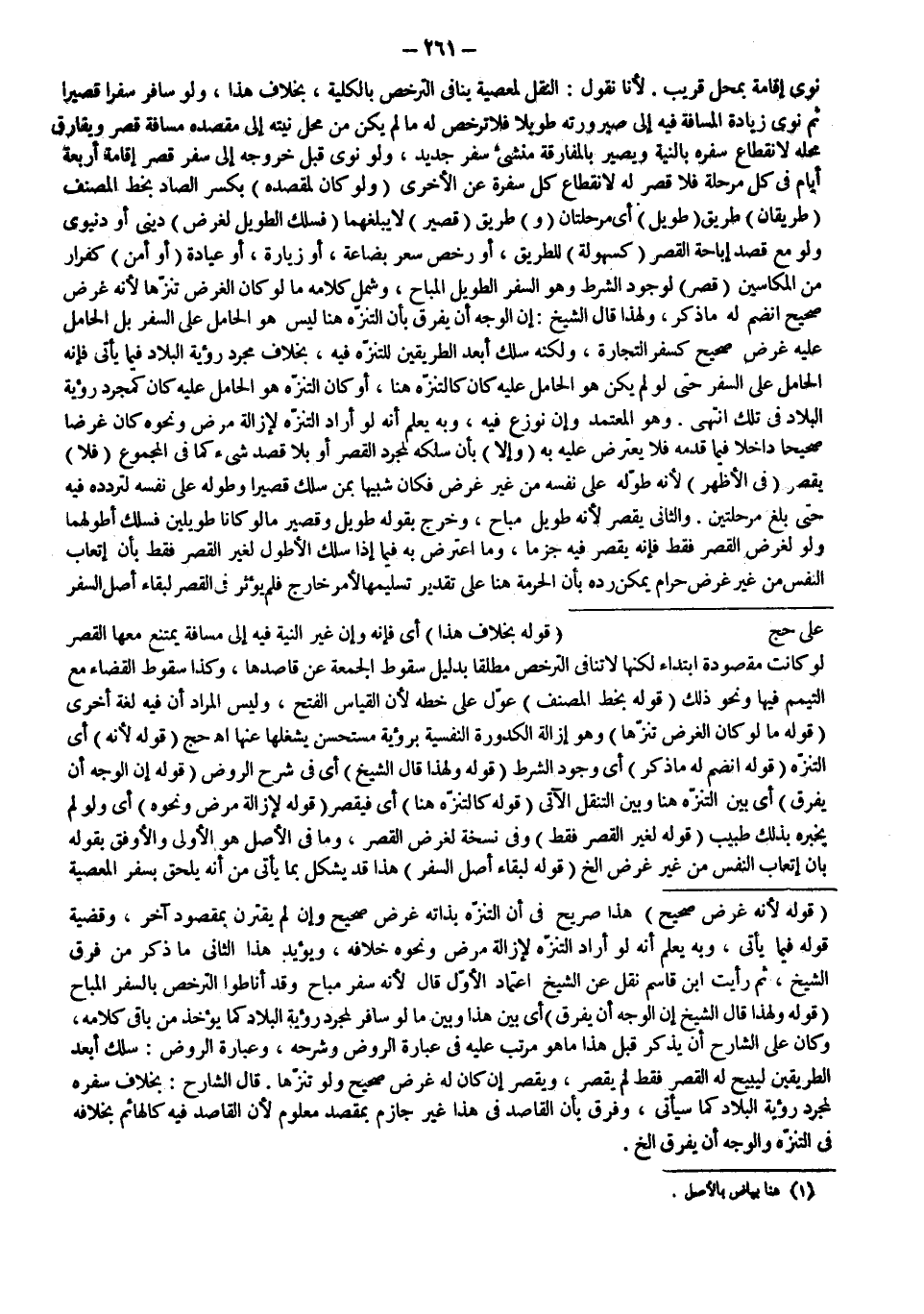 (قَوْلُهُ: لِغَيْرِ الْقَصْرِ فَقَطْ) وَفِي نُسْخَةٍ لِغَرَضِ الْقَصْرِ، وَمَا فِي الْأَصْلِ هُوَ الْأَوْلَى وَالْأَوْفَقُ بِقَوْلِهِ بِأَنَّ إتْعَابَ النَّفْسِ مِنْ غَيْرِ غَرَضٍ إلَخْ.