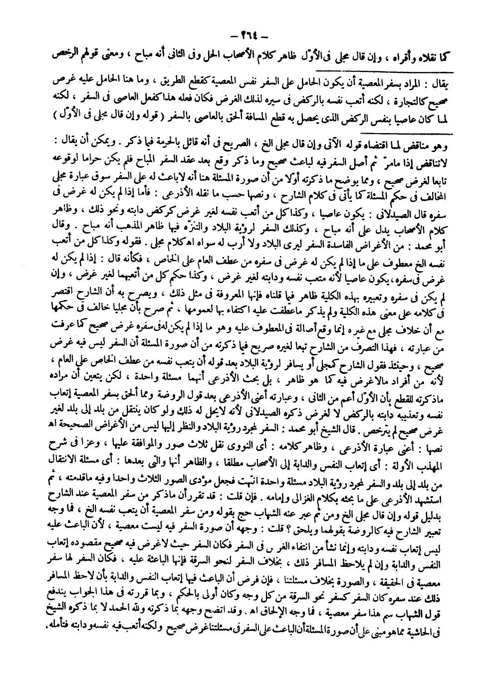 وَقَدْ اتَّضَحَ وَجْهُهُ بِمَا ذَكَرْته وَلِلَّهِ الْحَمْدُ لَا بِمَا ذَكَرَهُ الشَّيْخُ فِي الْحَاشِيَةِ مِمَّا هُوَ مَبْنِيٌّ عَلَى أَنَّ صُورَةَ الْمَسْأَلَةِ أَنَّ الْبَاعِثَ عَلَى السَّفَرِ فِي مَسْأَلَتِنَا غَرَضٌ صَحِيحٌ وَلَكِنَّهُ أَتْعَبَ فِيهِ نَفْسَهُ وَدَابَّتَهُ فَتَأَمَّلْهُ.