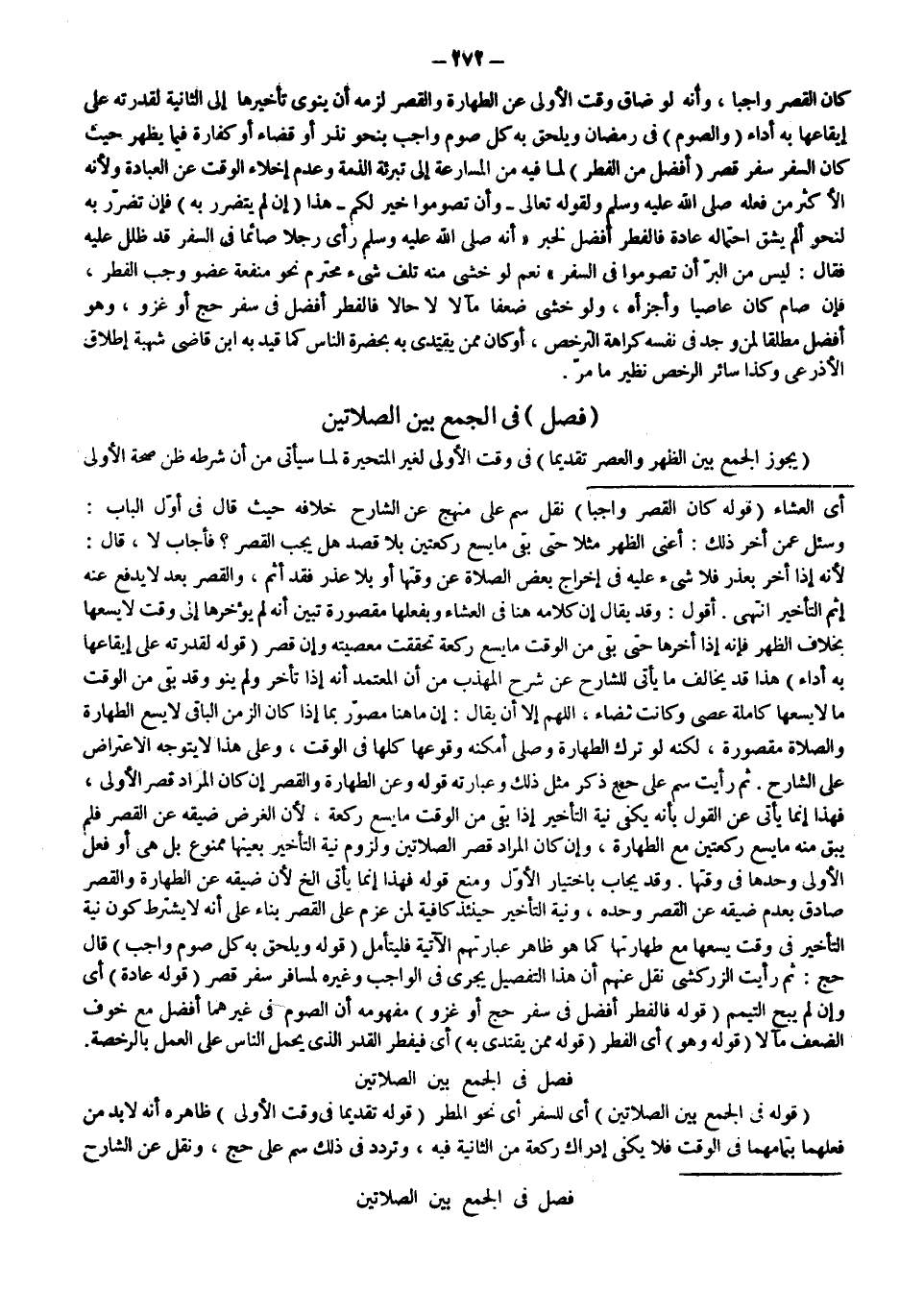 (قَوْلُهُ: فِي الْجَمْعِ بَيْنَ الصَّلَاتَيْنِ) أَيْ لِلسَّفَرِ أَيْ نَحْوِ الْمَطَرِ.