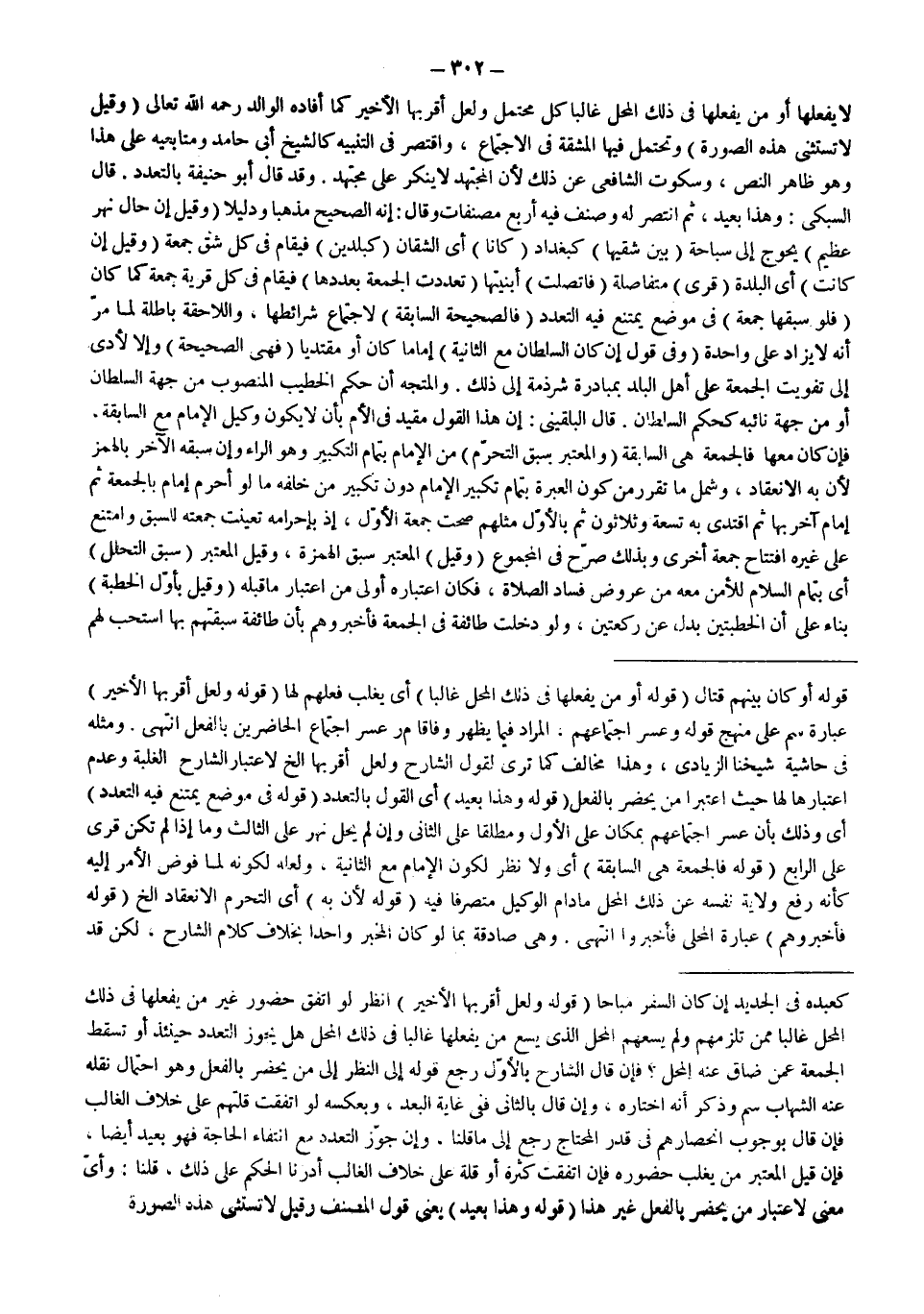 وَإِنْ جُوِّزَ التَّعَدُّدُ مَعَ انْتِفَاءِ الْحَاجَةِ فَهُوَ بَعِيدٌ أَيْضًا، فَإِنْ قِيلَ الْمُعْتَبَرُ مَنْ يَغْلِبُ حُضُورُهُ فَإِنْ اتَّفَقَتْ كَثْرَةً أَوْ قِلَّةً عَلَى خِلَافِ الْغَالِبِ أَدَرْنَا الْحُكْمَ عَلَى ذَلِكَ، قُلْنَا: وَأَيُّ مَعْنًى لِاعْتِبَارِ مَنْ يَحْضُرُ بِالْفِعْلِ غَيْرِ هَذَا (قَوْلُهُ: وَهَذَا بَعِيدٌ) يَعْنِي قَوْلَ الْمُصَنِّفِ وَقِيلَ لَا تُسْتَثْنَى هَذِهِ الصُّورَةُ.