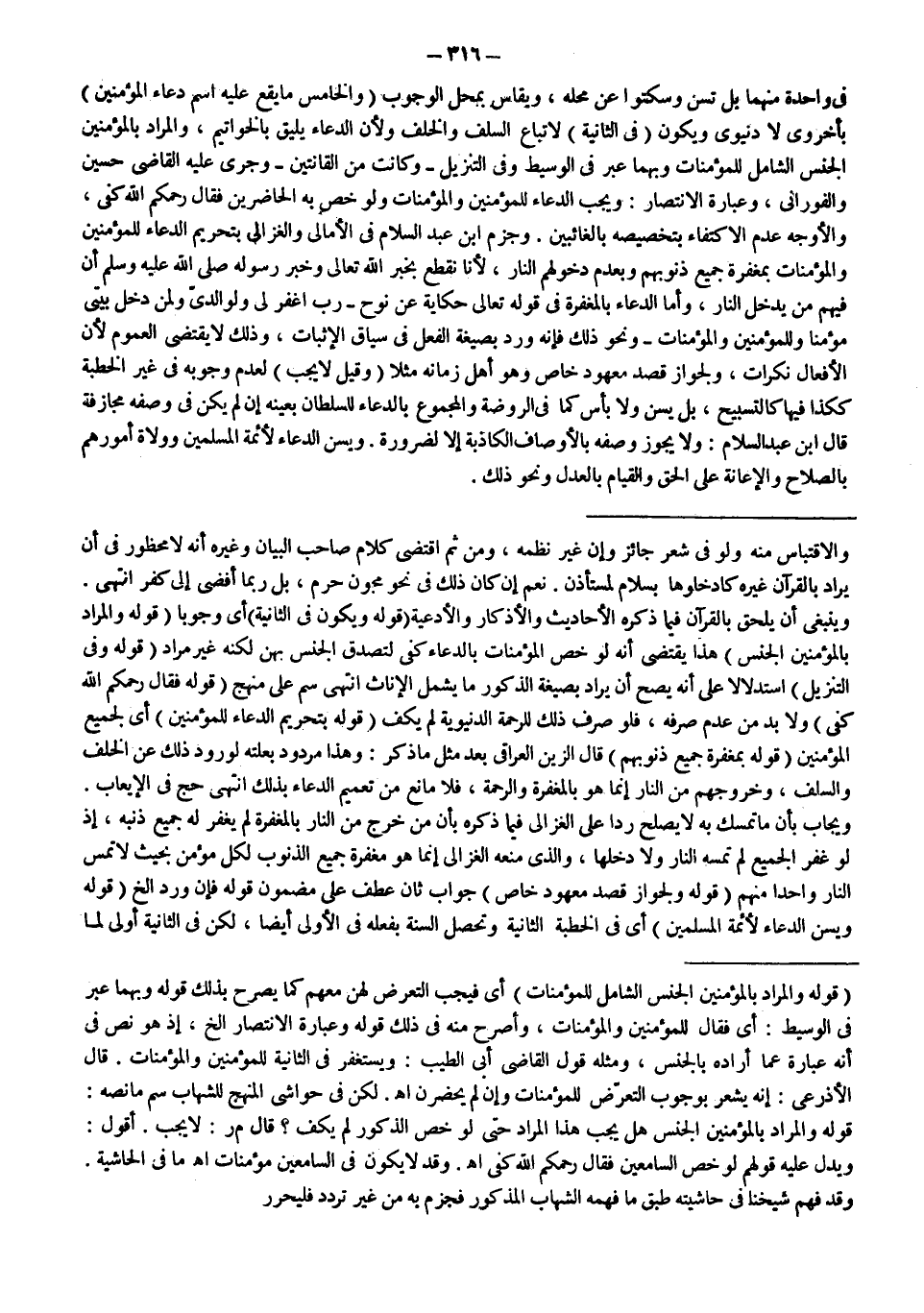 لَكِنْ فِي حَوَاشِي الْمَنْهَجِ لِلشِّهَابِ سم مَا نَصُّهُ: قَوْلُهُ: وَالْمُرَادُ بِالْمُؤْمِنِينَ الْجِنْسُ هَلْ يَجِبُ هَذَا الْمُرَادُ حَتَّى لَوْ خَصَّ الذُّكُورَ لَمْ يَكْفِ؟ قَالَ م ر: لَا يَجِبُ. أَقُولُ: وَيَدُلُّ عَلَيْهِ قَوْلُهُمْ لَوْ خَصَّ السَّامِعِينَ فَقَالَ رَحِمَكُمْ اللَّهُ كَفَى. اهـ. وَقَدْ لَا يَكُونُ فِي السَّامِعِينَ مُؤْمِنَاتٌ. اهـ مَا فِي الْحَاشِيَةِ. وَقَدْ فَهِمَ شَيْخُنَا فِي حَاشِيَتِهِ طِبْقَ مَا فَهِمَهُ الشِّهَابُ الْمَذْكُورُ فَجَزَمَ بِهِ مِنْ غَيْرِ تَرَدُّدٍ فَلْيُحَرَّرْ