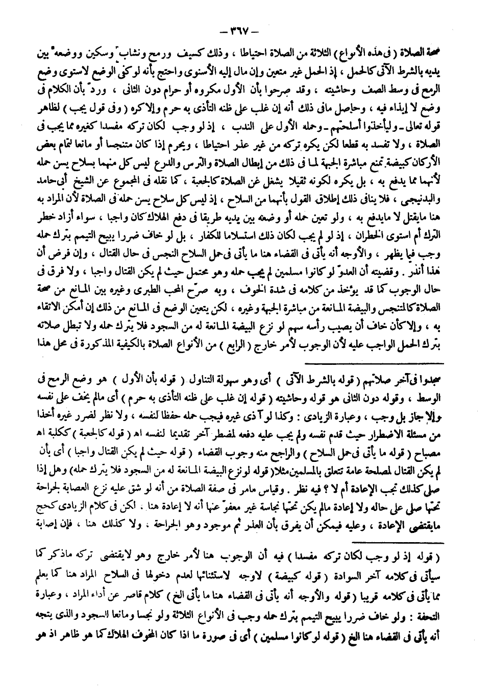 ـــــــــــــــــــــــــــــQقَوْلُهُ: إذْ لَوْ وَجَبَ لَكَانَ تَرْكُهُ مُفْسِدًا) فِيهِ أَنَّ الْوُجُوبَ هُنَا لِأَمْرٍ خَارِجٍ وَهُوَ لَا يَقْتَضِي تَرْكَهُ مَا ذَكَرَ كَمَا سَيَأْتِي فِي كَلَامِهِ آخِرَ السِّوَادَةِ (قَوْلُهُ: كَبَيْضَةٍ) لَا وَجْهَ لِاسْتِئْنَائِهَا لِعَدَمِ دُخُولِهَا فِي السِّلَاحِ الْمُرَادِ هُنَا كَمَا يُعْلَمُ مِمَّا يَأْتِي فِي كَلَامِهِ قَرِيبًا (قَوْلُهُ: وَالْأَوْجَهُ أَنَّهُ يَأْتِي فِي الْقَضَاءِ هُنَا مَا يَأْتِي إلَخْ) كَلَامٌ قَاصِرٌ عَنْ أَدَاءِ الْمُرَادِ، وَعِبَارَةُ التُّحْفَةِ: وَلَوْ خَافَ ضَرَرًا يُبِيحُ التَّيَمُّمَ بِتَرْكِ حَمْلِهِ وَجَبَ فِي الْأَنْوَاعِ الثَّلَاثَةِ وَلَوْ نَجِسًا وَمَانِعًا لِلسُّجُودِ وَاَلَّذِي يَتَّجِهُ أَنَّهُ يَأْتِي فِي الْقَضَاءِ هُنَا إلَخْ (قَوْلُهُ: لَوْ كَانُوا مُسْلِمِينَ) أَيْ فِي صُورَةِ مَا إذَا كَانَ الْمَخُوفُ الْهَلَاكَ كَمَا هُوَ ظَاهِرٌ إذْ هُوَ